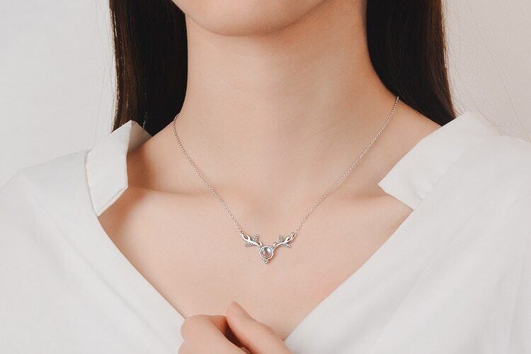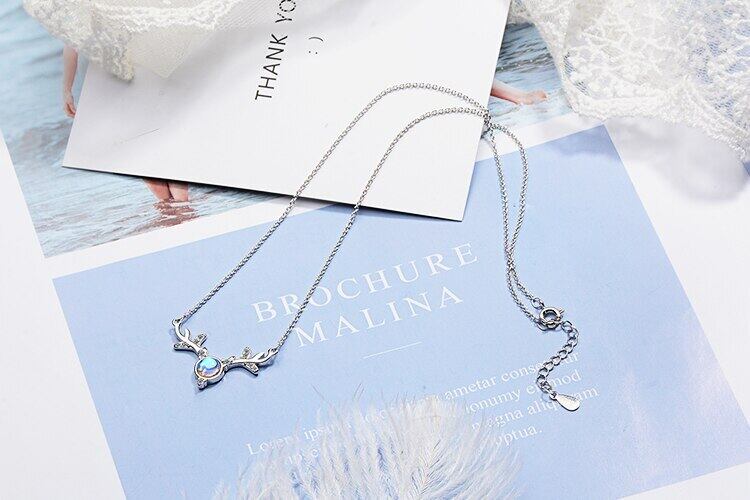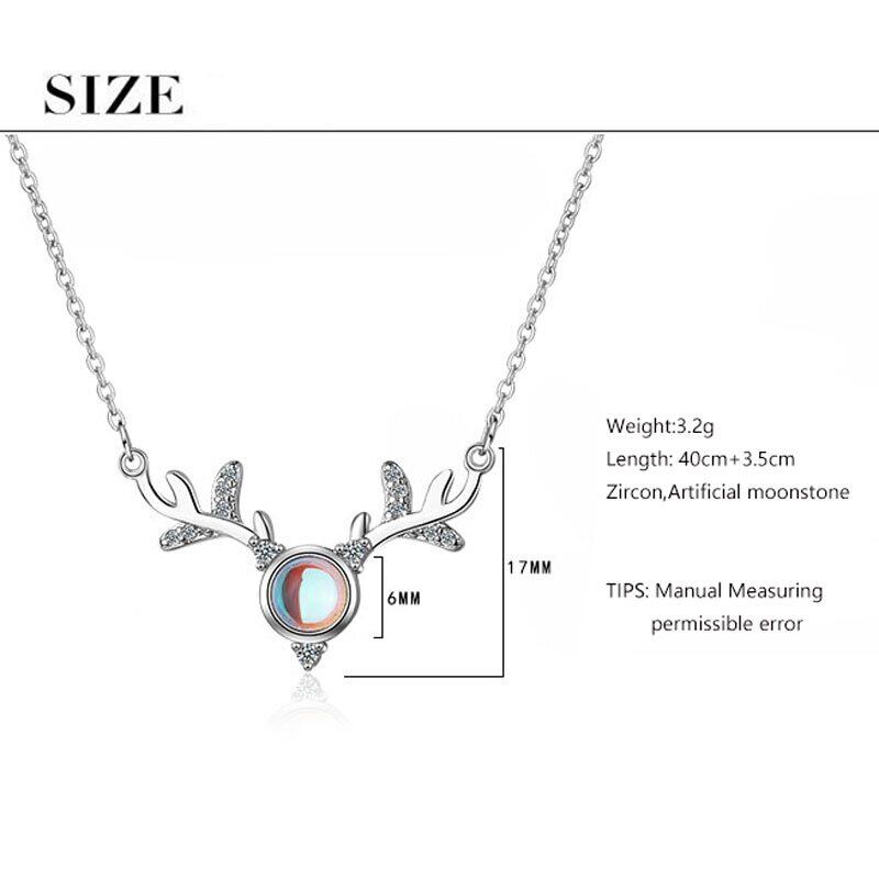 送料無料 ANENJERYシルバーカラーアントラーズペンダントネックレスチャームムーンストーンネカクレースウィズシャイニージルコンレディースクリスマスギフトS-N354 銀 アクセサリー AE165514747279902