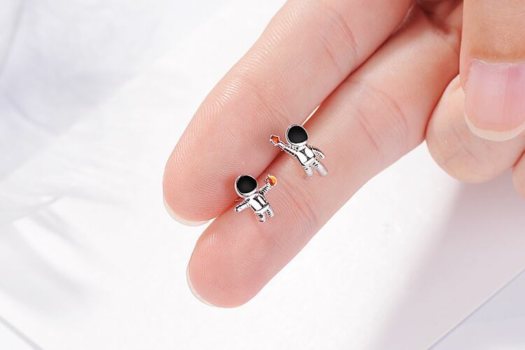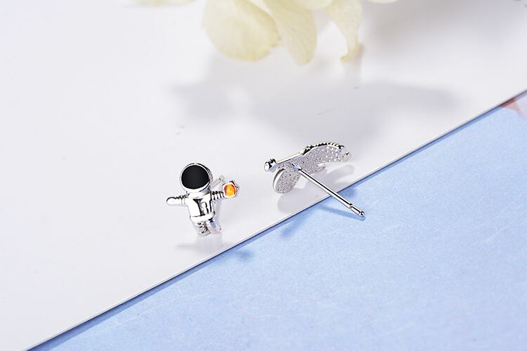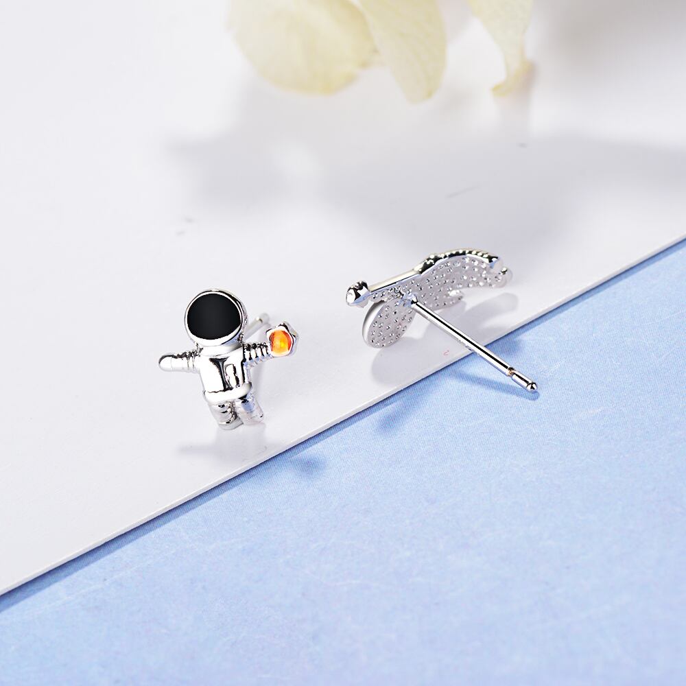 送料無料 ANENJERYシルバーカラースカイスペース宇宙飛行士クリスタルウィメンズガールS-E919の小さな非対称スタッドピアス イヤリング リング 指輪 銀 アクセサリー AE165586905946215