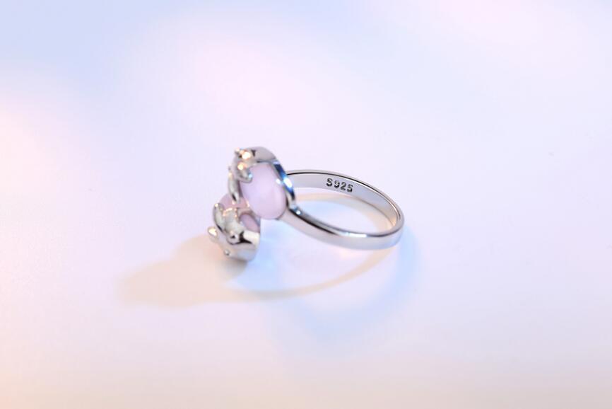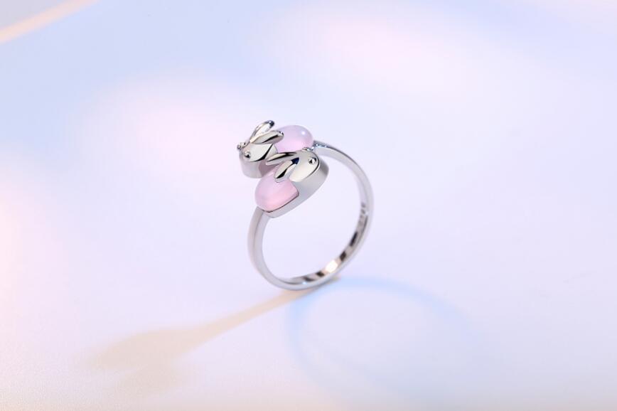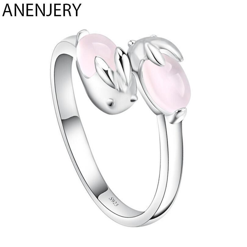 送料無料 ANENJERYシルバーカラーダブルラビットアニマルリングピンクオパールクリスタルストーンジュエリーガールズギフトS-R135 指輪 蛋白石 銀 アクセサリー AE165576248206091