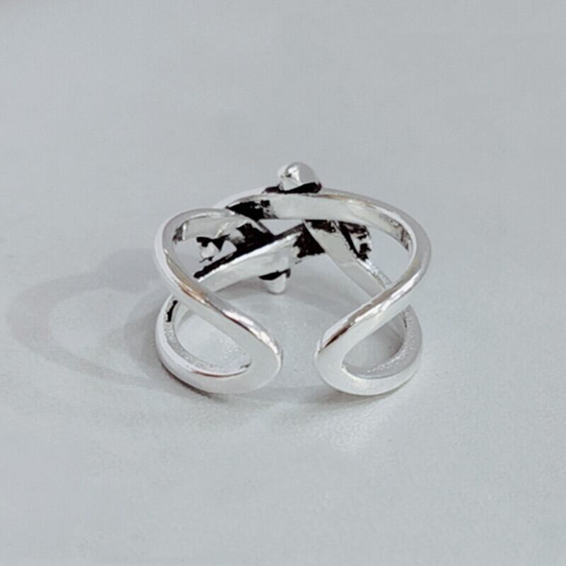 送料無料 ANENJERYシルバーカラーヴィンテージジュエリー幾何学的ツイストノットタイシルバーリングオープンサイズリング女性発送S-R493 指輪 銀 ビンテージ アクセサリー AE16554612792683