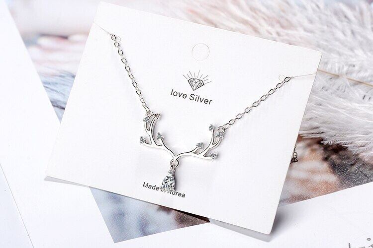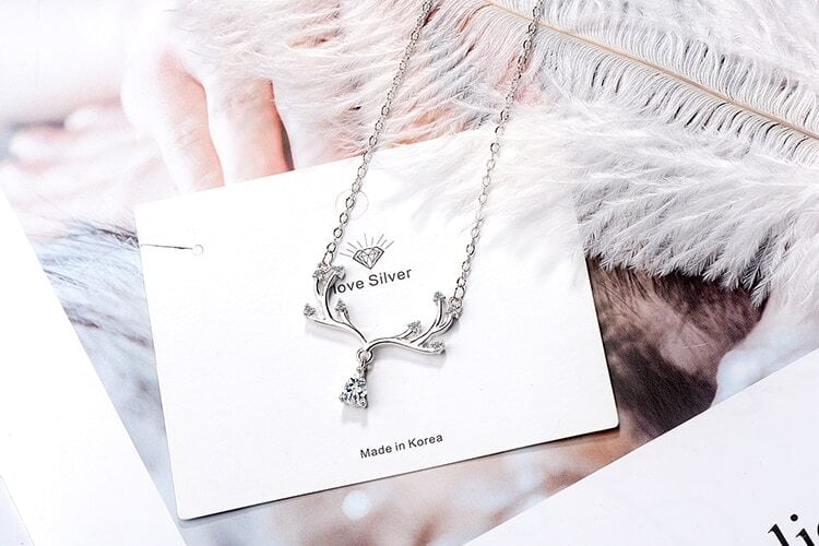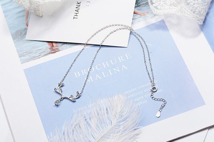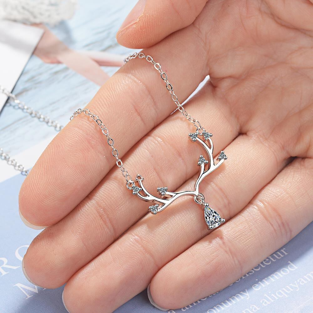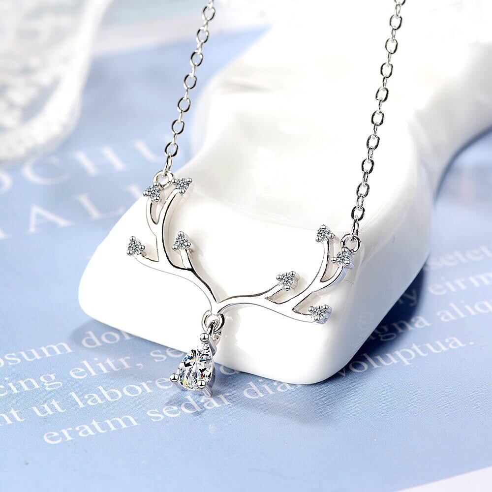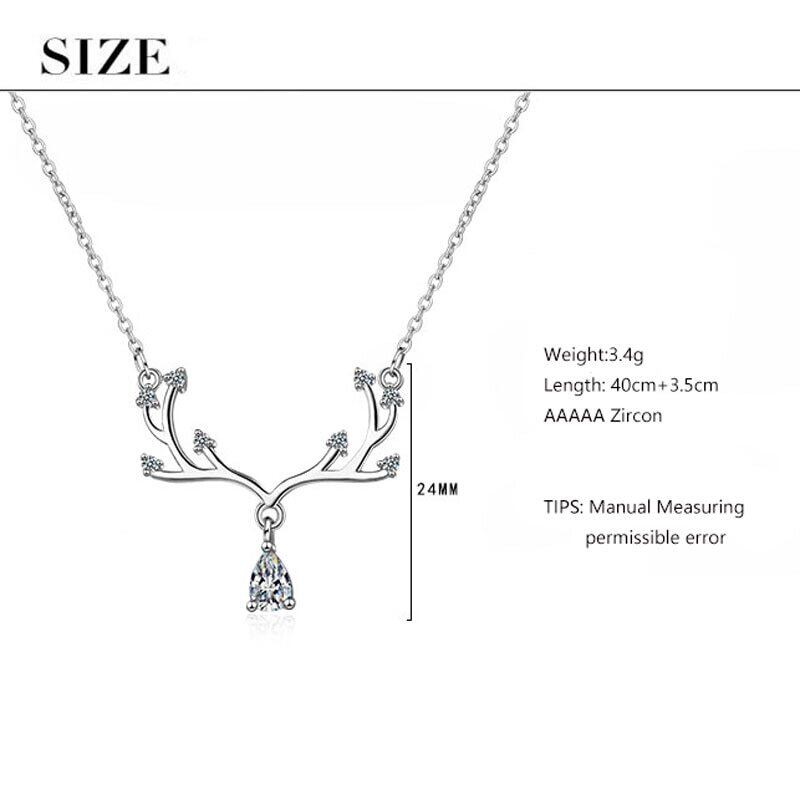 送料無料 ANENJERYシルバーカラーエルクアントラーズレディペンダントネックレス女性クリスマスデーギフトジルコンネックレスジュエリー女性S-N353 レース 銀 アクセサリー AE165542090243421