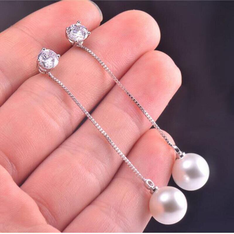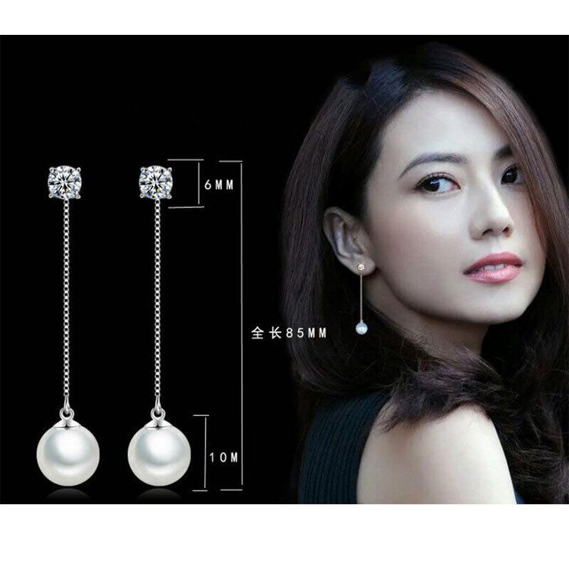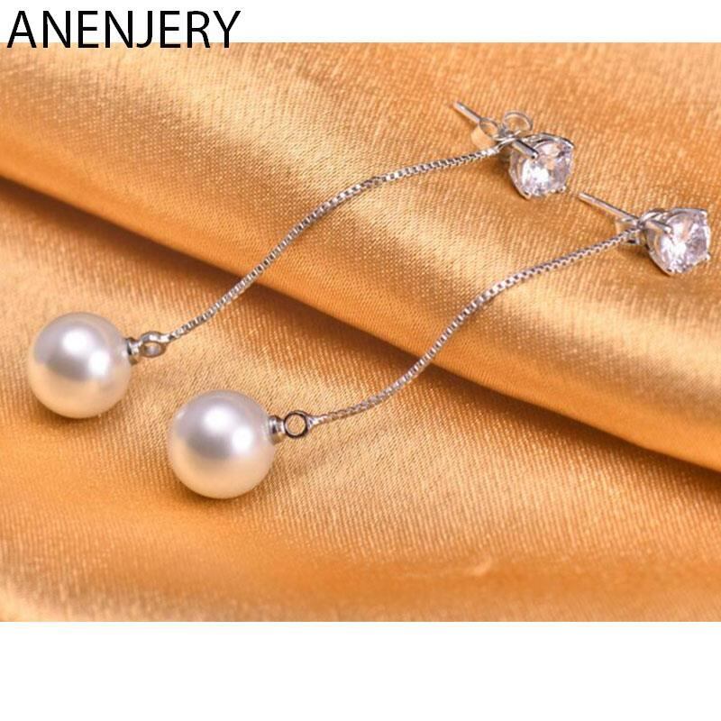 送料無料 ANENJERYシルバーカラーパールジルコンロングテルチェーンイヤリング女性結婚披露宴S-E432 真珠 指輪 銀 アクセサリー AE165531785260892