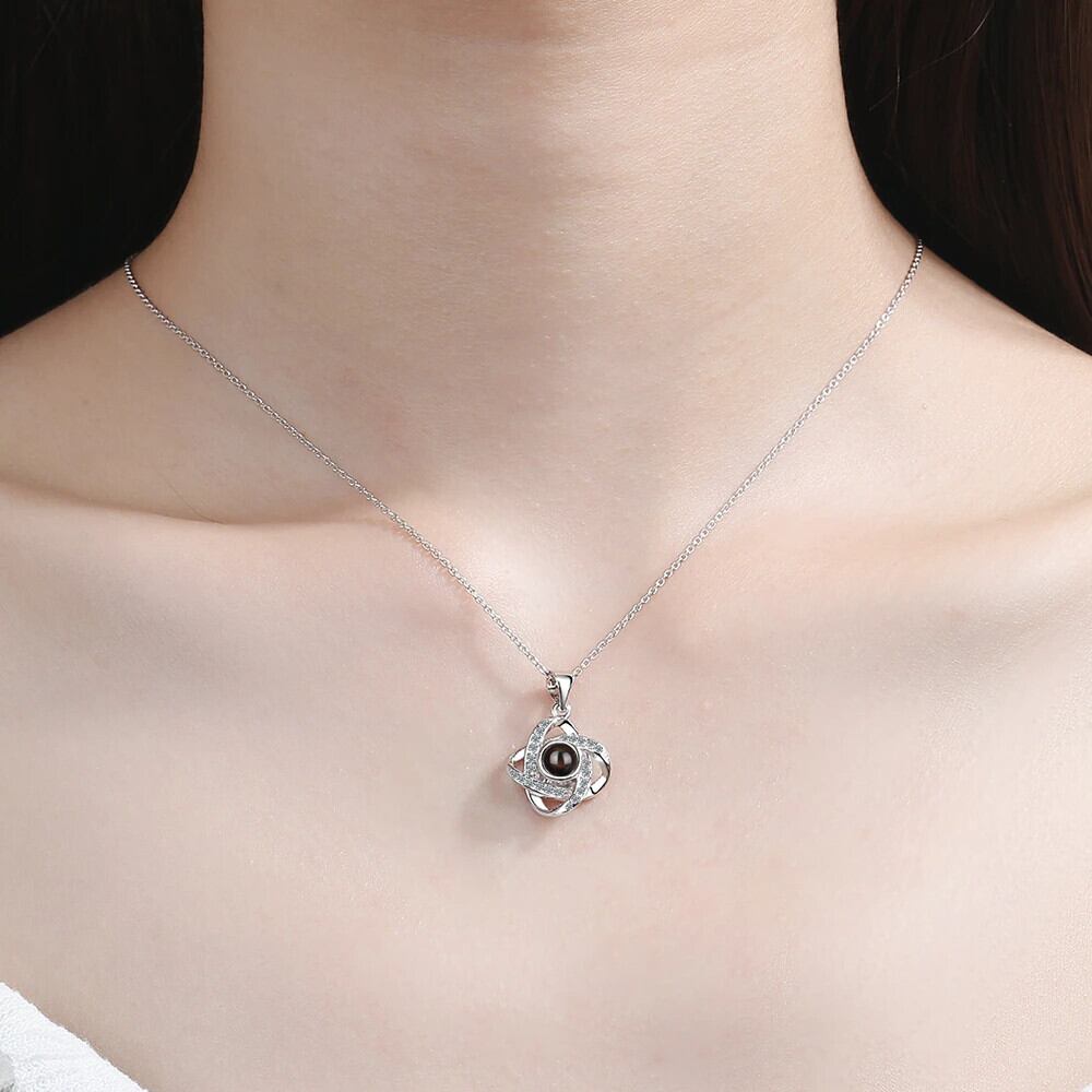 送料無料 ANENJERYシルバーカラーILoveYouプロジェクションネックレスジルコンツイスト意味のあるネックレス女性バレンタインギフトS-N397 レース 銀 アクセサリー AE165519416274762