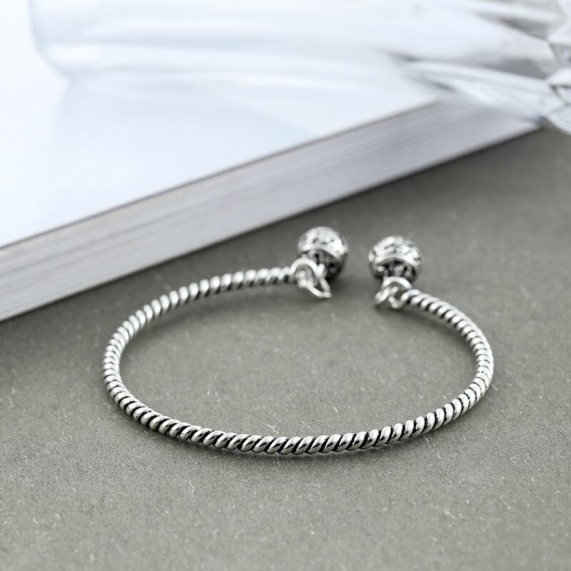送料無料 ANENJERYシルバーカラーダブルベルタイシルバーバングルツイストロープオープンカフバングルブレスレットレディースメンズS-B293 銀 アクセサリー AE165556490697087