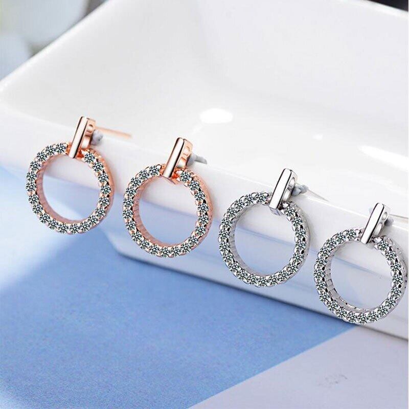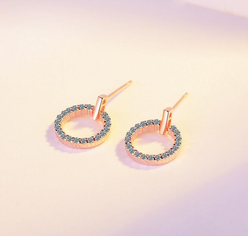 送料無料 ANENJERYシルバーカラーシンプルローズゴールドカラーラウンドサークルマイクロパヴェジルコンスタッドピアスレディースジュエリーS-E407 イヤリング リング 指輪 銀 アクセサリー AE165521027845222
