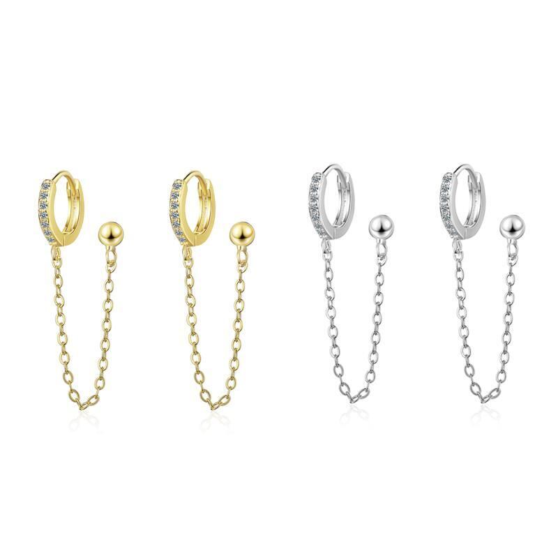 送料無料 ANENJERYシルバーカラー1PCダブルイヤーホールキュービックジルコンフープピアスリンクチェーンイヤリングジュエリーレディースS-E1009 指輪 銀 アクセサリー AE165534247506298