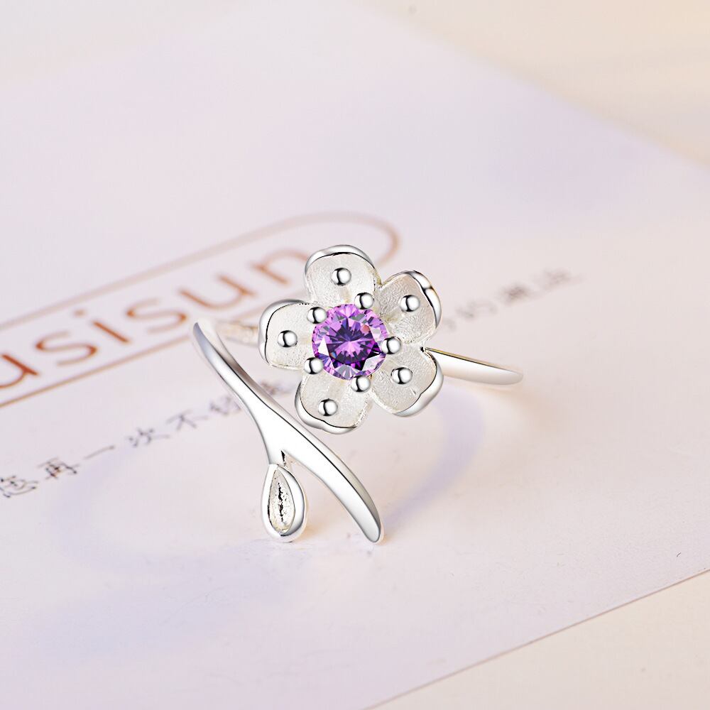 送料無料 ANENJERYシルバーカラーノベルティ桜フラワーオープニングリングピンクパープルジルコンレディースジュエリーS-R78 指輪 フラワーデザイン 銀 アクセサリー AE165568598803103