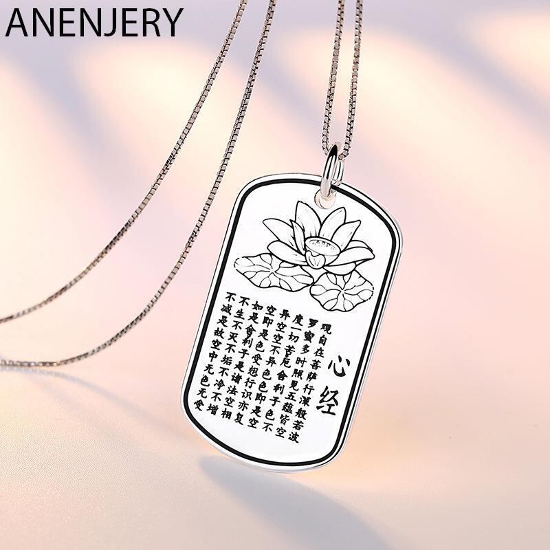 送料無料 シルバーカラーパーソナリティ蓮若心経ペンダントネックレス仏典ペンダントジュエリー女性男性ギフトS-N145 レース 銀 アクセサリー AE165583999348507