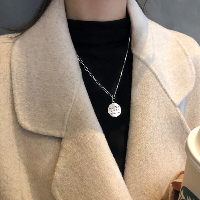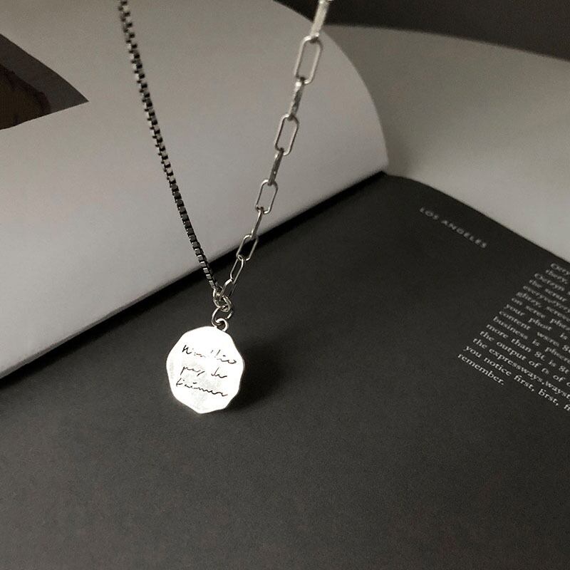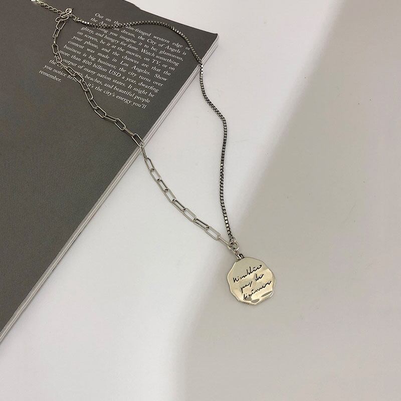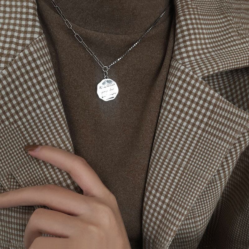 送料無料 ヴィンテージ不規則なラウンドディスクタイシルバーカラーペンダントネックレスレターチャームネックレス女性ジュエリーギフトS-N557 レース 銀 ビンテージ アクセサリー AE16557137991228