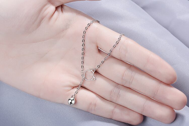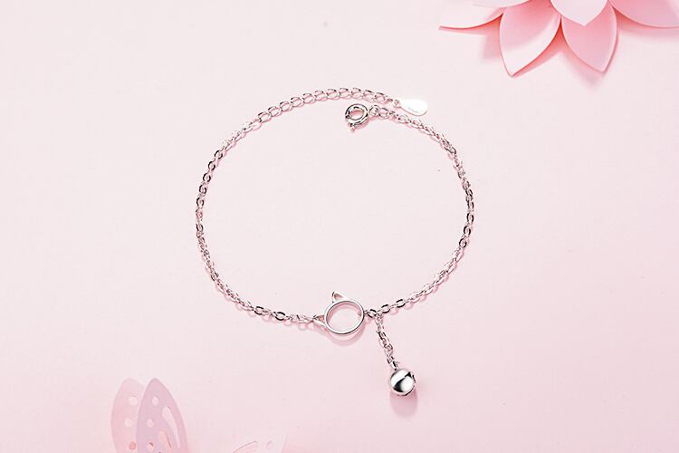 送料無料 ANENJERYレディースガールハンドジュエリーかわいいベルキャットリンクチェーンブレスレットシルバーカラーブレスレットS-B140 大人ガーリー スウィート キュート カジュアル 銀 アクセサリー AE165582117914561