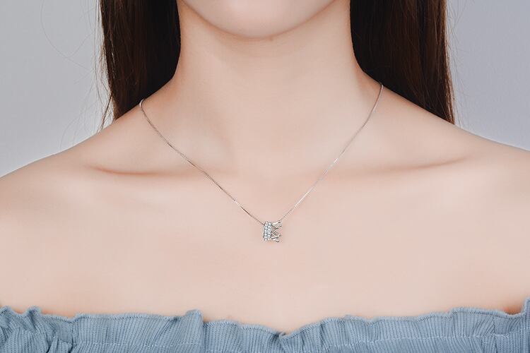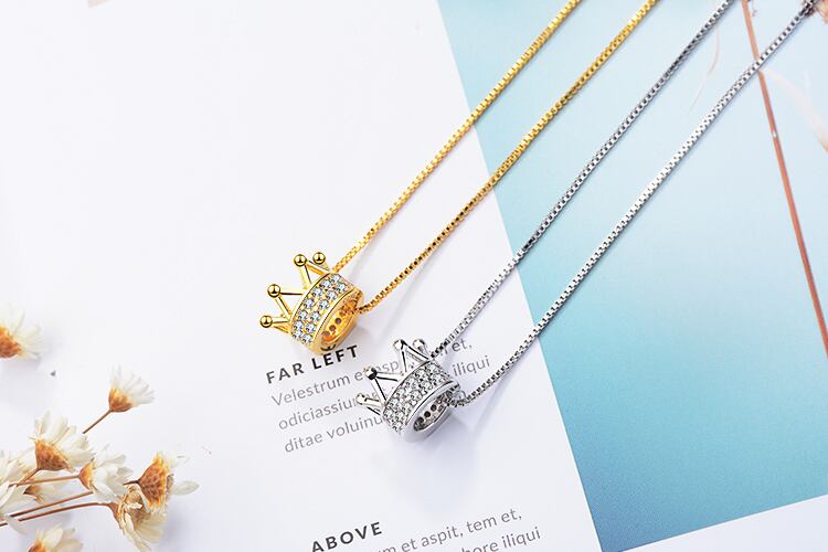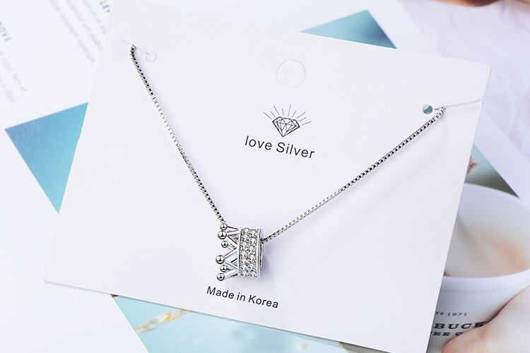 送料無料 ANENJERYシルバーカラーデリケートキュービックジルコンクラウンペンダントネックレスレディースジュエリーバースデーギフトS-N311 銀 アクセサリー AE165588290188750