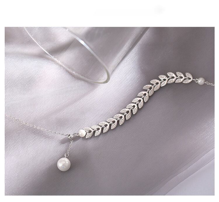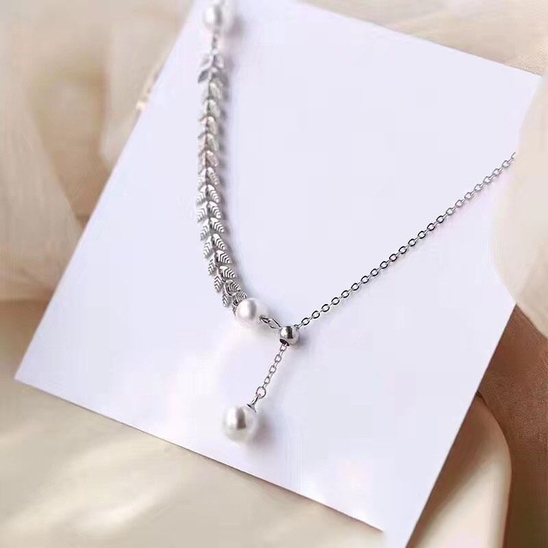 送料無料 ANENJERYシルバーカラーデリケートウィートイヤーチョーカーネックレスロングテルペンダントパールネックレスジュエリーレディースギフトS-N471 レース 真珠 銀 アクセサリー AE165543849427361