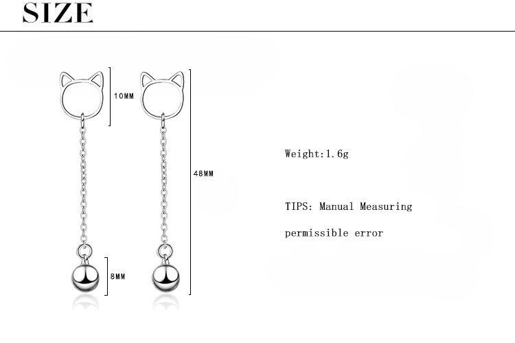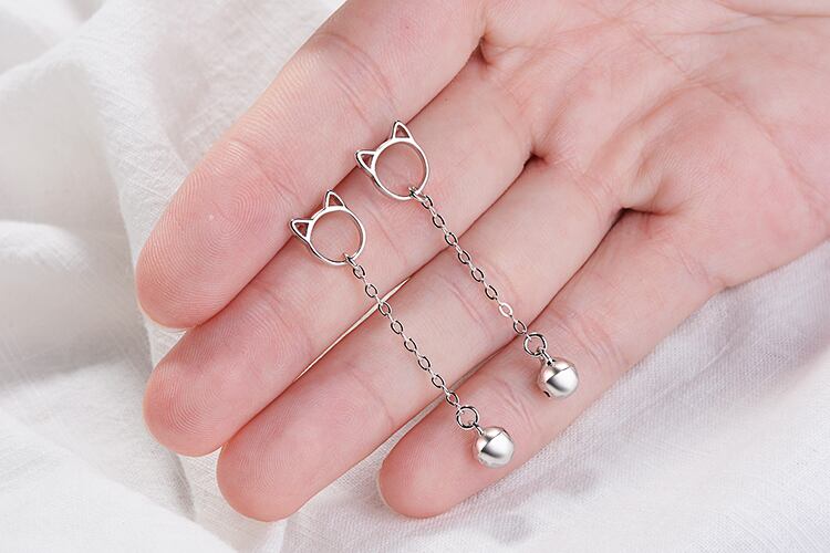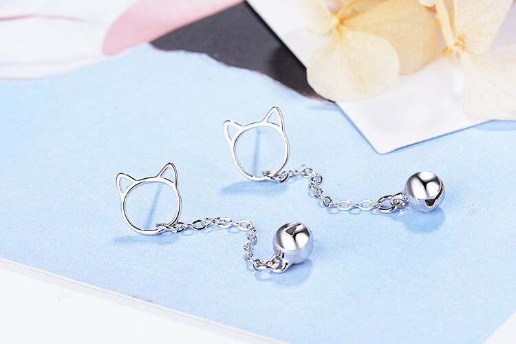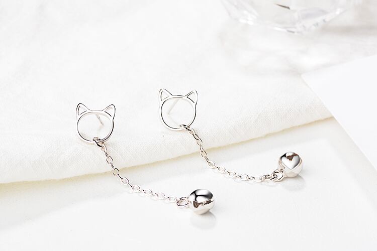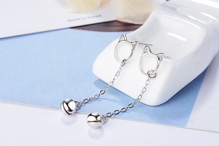 送料無料 ANENJERYシルバーカラーキャットベルロングテルピアスかわいいアニマルジュエリー女性ダングルピアスS-E675 イヤリング 大人ガーリー スウィート キュート カジュアル リング 指輪 銀 アクセサリー AE165548092677485