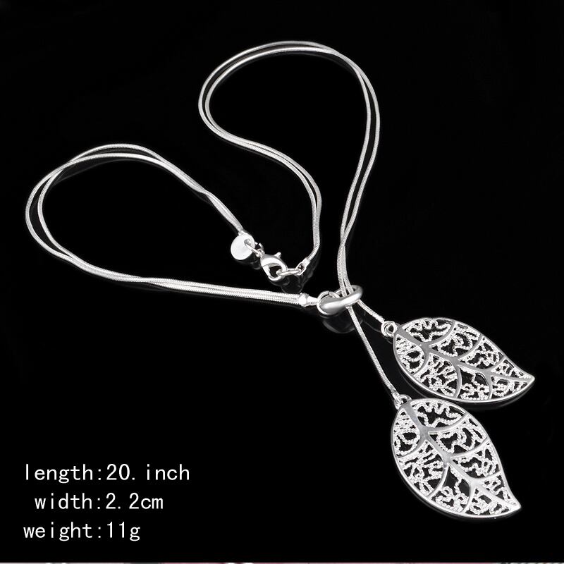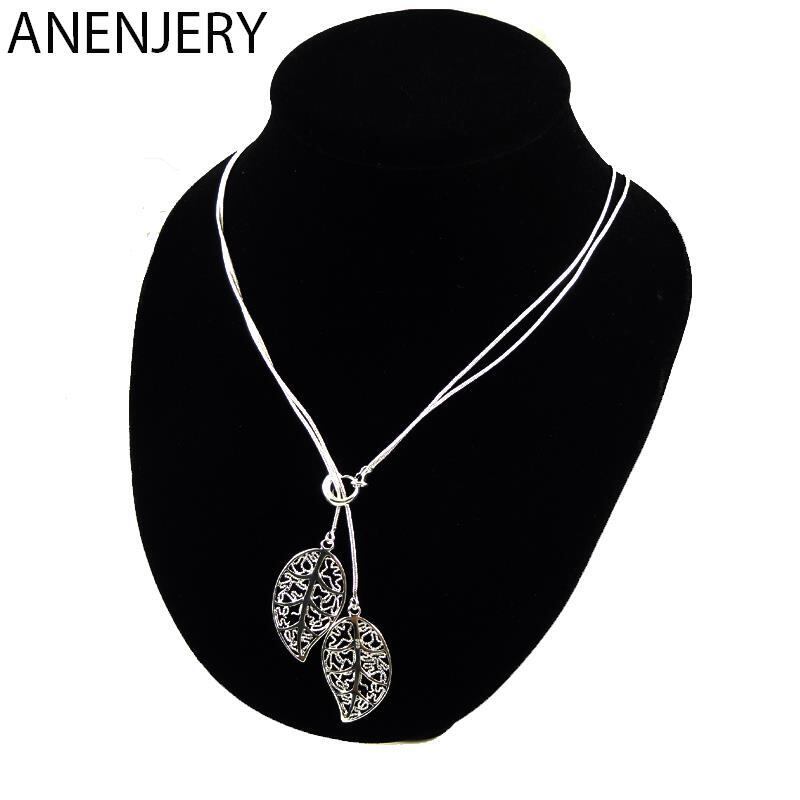 送料無料 ANENJERYシルバーカラーダブルホロウリーブペンダントチェーンネックレスポーランドパーソナリティネックレスジュエリーレディースS-N25 レース 銀 アクセサリー AE165541338384362
