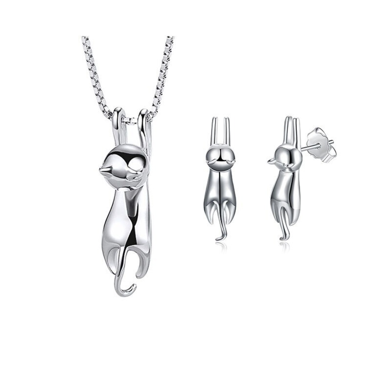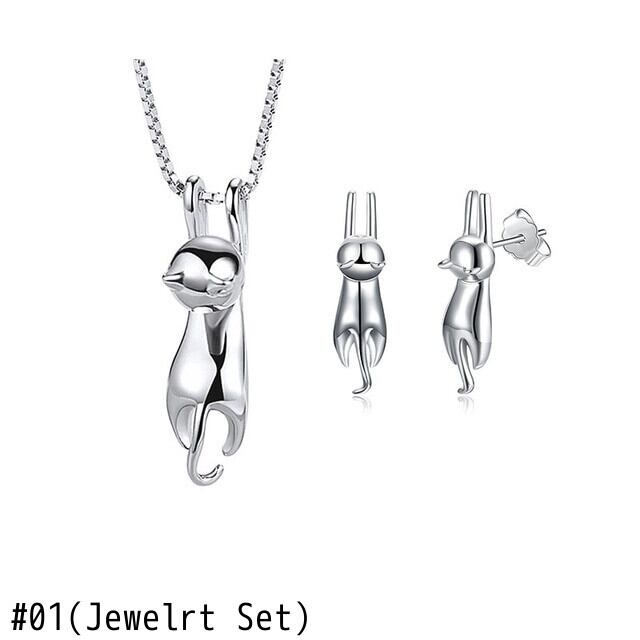 送料無料 ANENJERYシルバーカラーかわいい猫のジュエリーセットネックレスとイヤリングウェディングブライダルジュエリーセット女性 レース 大人ガーリー スウィート キュート カジュアル 指輪 銀 アクセサリー AE165532774788420