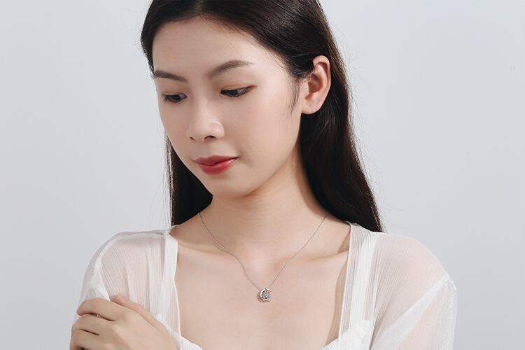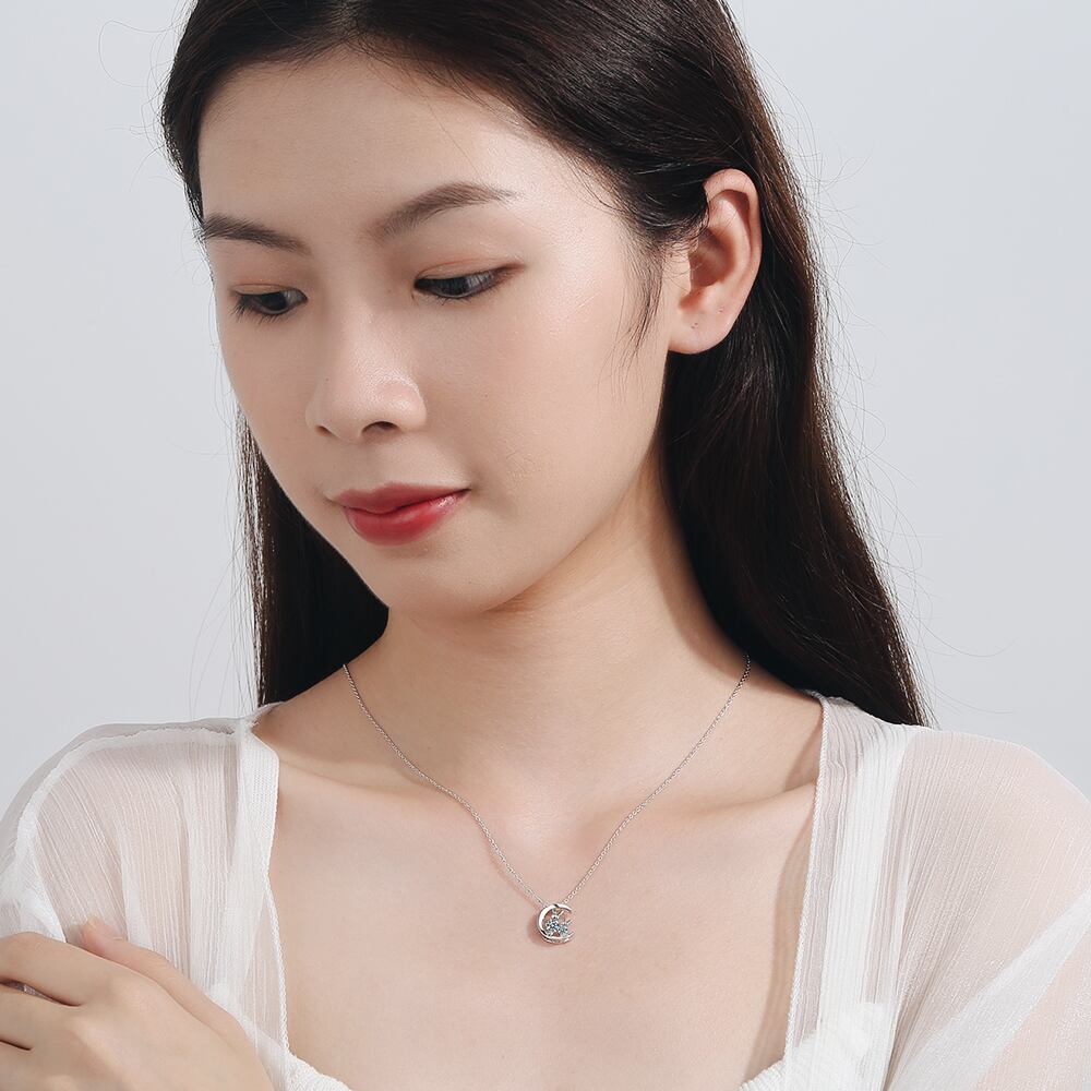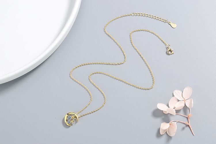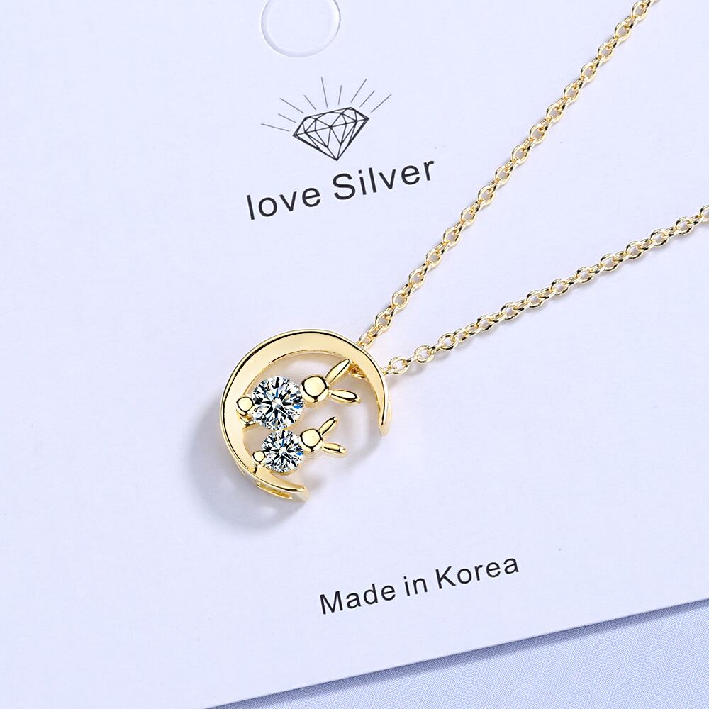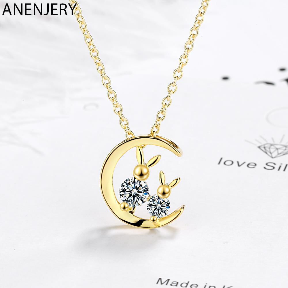 送料無料 ANENJERYシルバーカラームーンキャットネックレスペンダントクラビクルチェーンゴールドジルコンネックレスジュエリーレディースS-N480 レース 銀 アクセサリー AE165555707761479