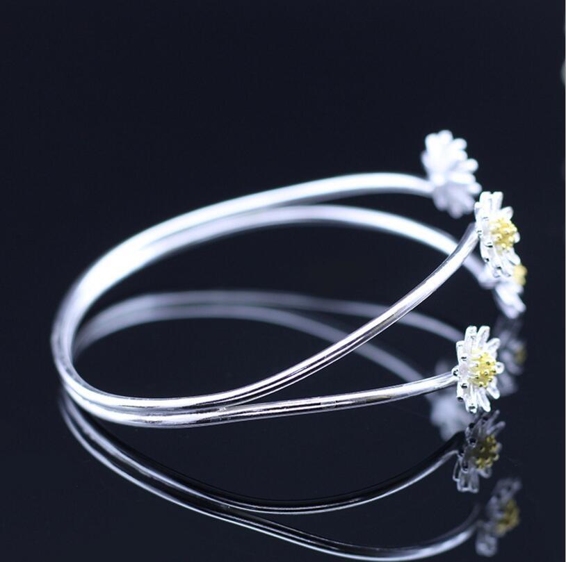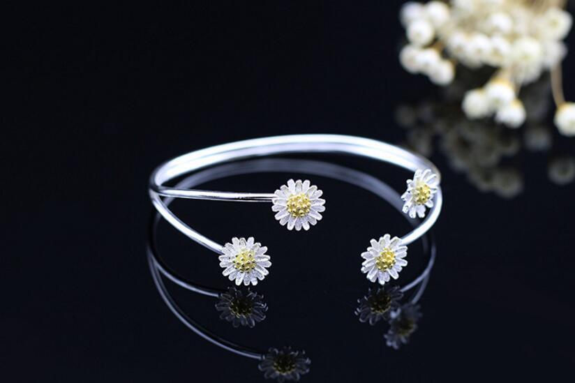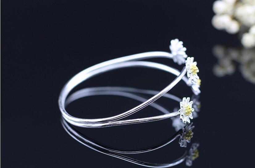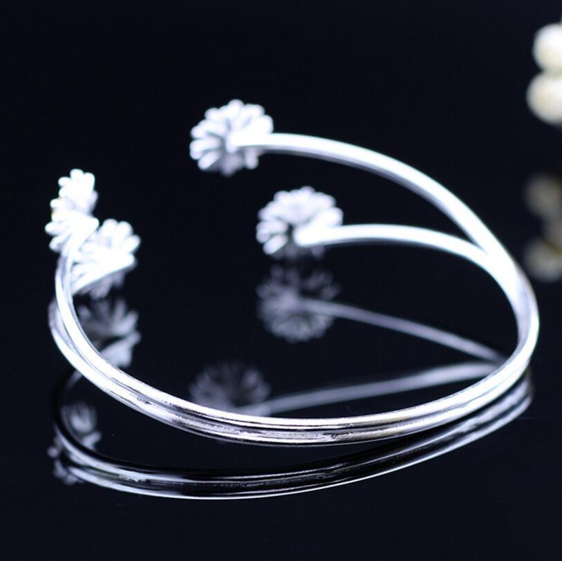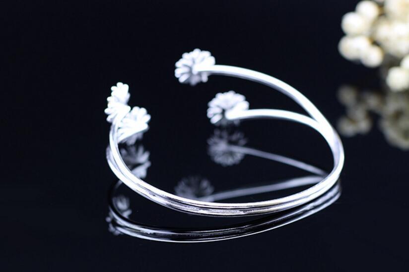 送料無料 ANENJERYシルバーカラーバングルレディースギフトオープンフラワーブレスレットバングルS-B141 フラワーデザイン 銀 アクセサリー AE165523292035655