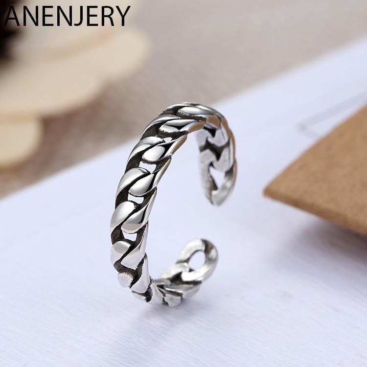 送料無料 ANENJERYシルバーカラーツイストロープロックオープニングアジャスタブルタイシルバーリングジュエリーメンズレディースS-R08 指輪 銀 アクセサリー AE165558091538586