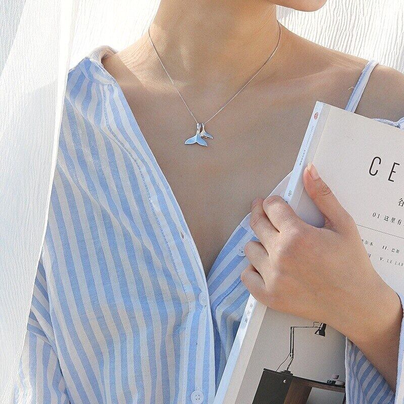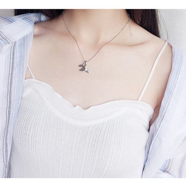 送料無料 ANENJERYシルバーカラーチャームマーメイドテールペンダントネックレスパーティージュエリー鎖骨チェーンチョーカーS-N434 レース 銀 アクセサリー AE165522256540675