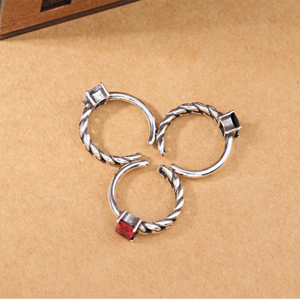 送料無料 ANENJERYシルバーカラーイレギュラーツイストロープチェーンタイシルバーリング、ブラッククリスタルジルコンオープンリングジュエリーS-R125 指輪 銀 アクセサリー AE165512855673371