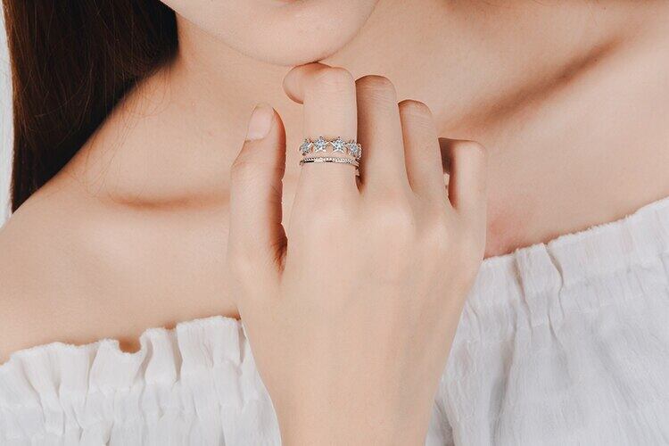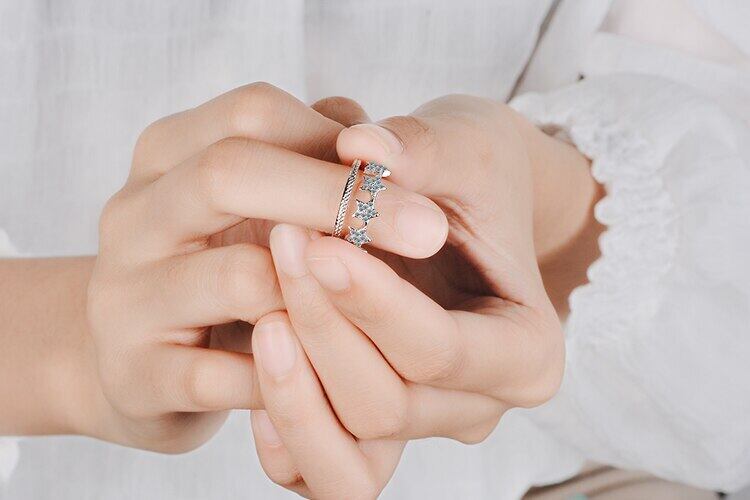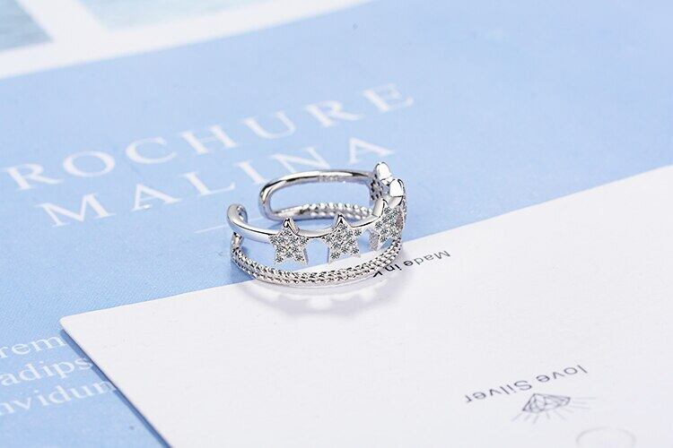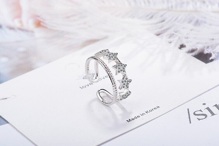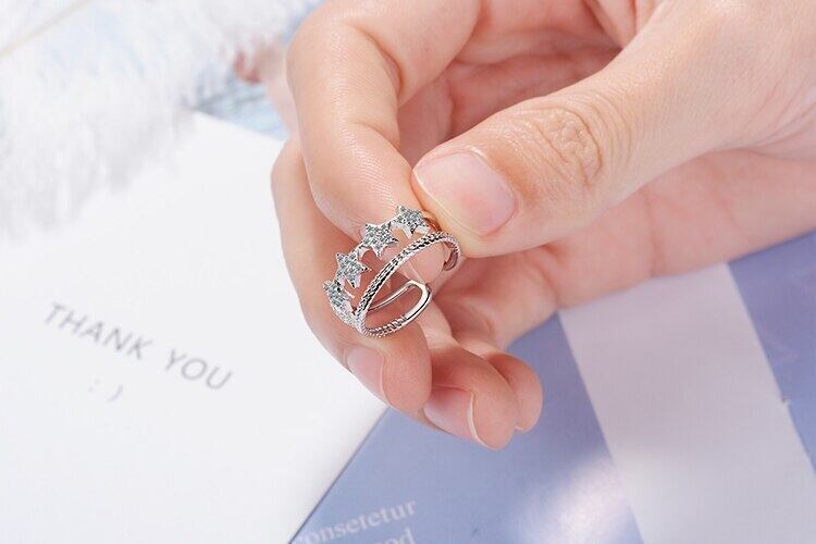 送料無料 ANENJERYシルバーカラーダブルラインアジャスタブルリングトゥインクリングスターオープンリングパーティーウェディングジュエリーギフトS-R387 指輪 銀 アクセサリー AE1655562446219