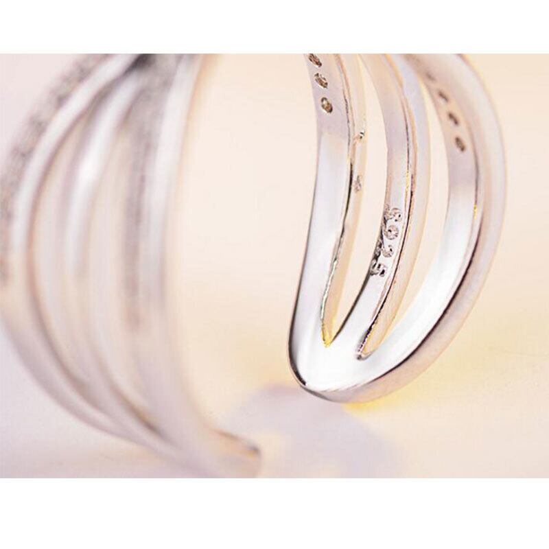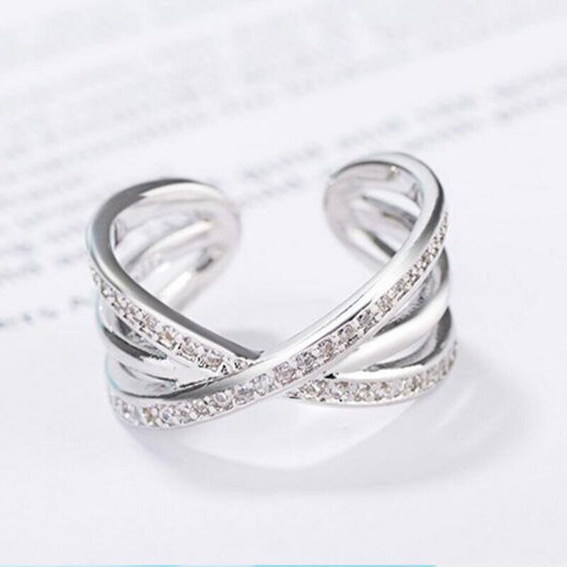 送料無料 ANENJERYシルバーカラーマルチレイヤーXクロスマイクロ舗装CZストーン結婚指輪女性パーティーギフト発送S-R216 リング 銀 アクセサリー AE165574889086495