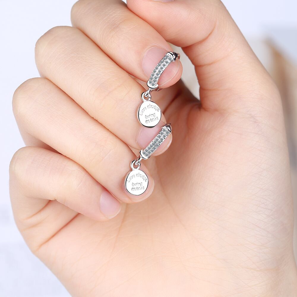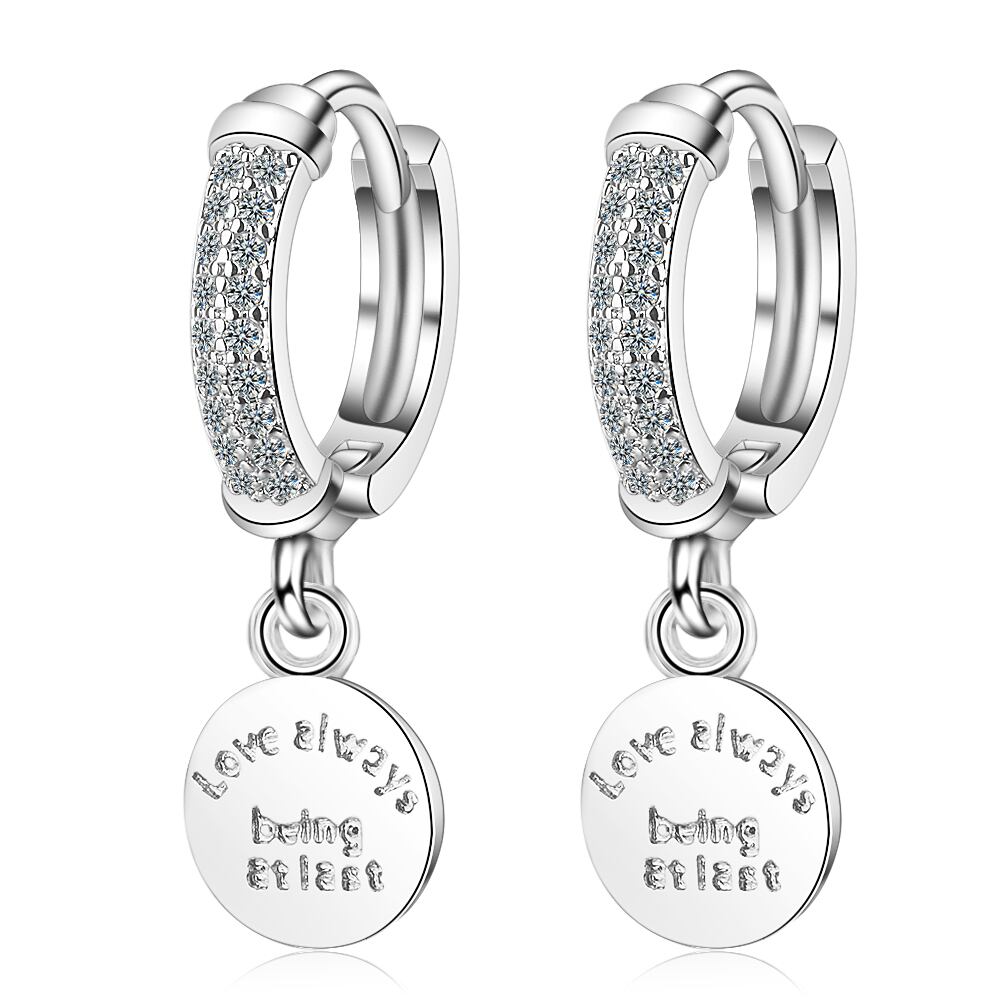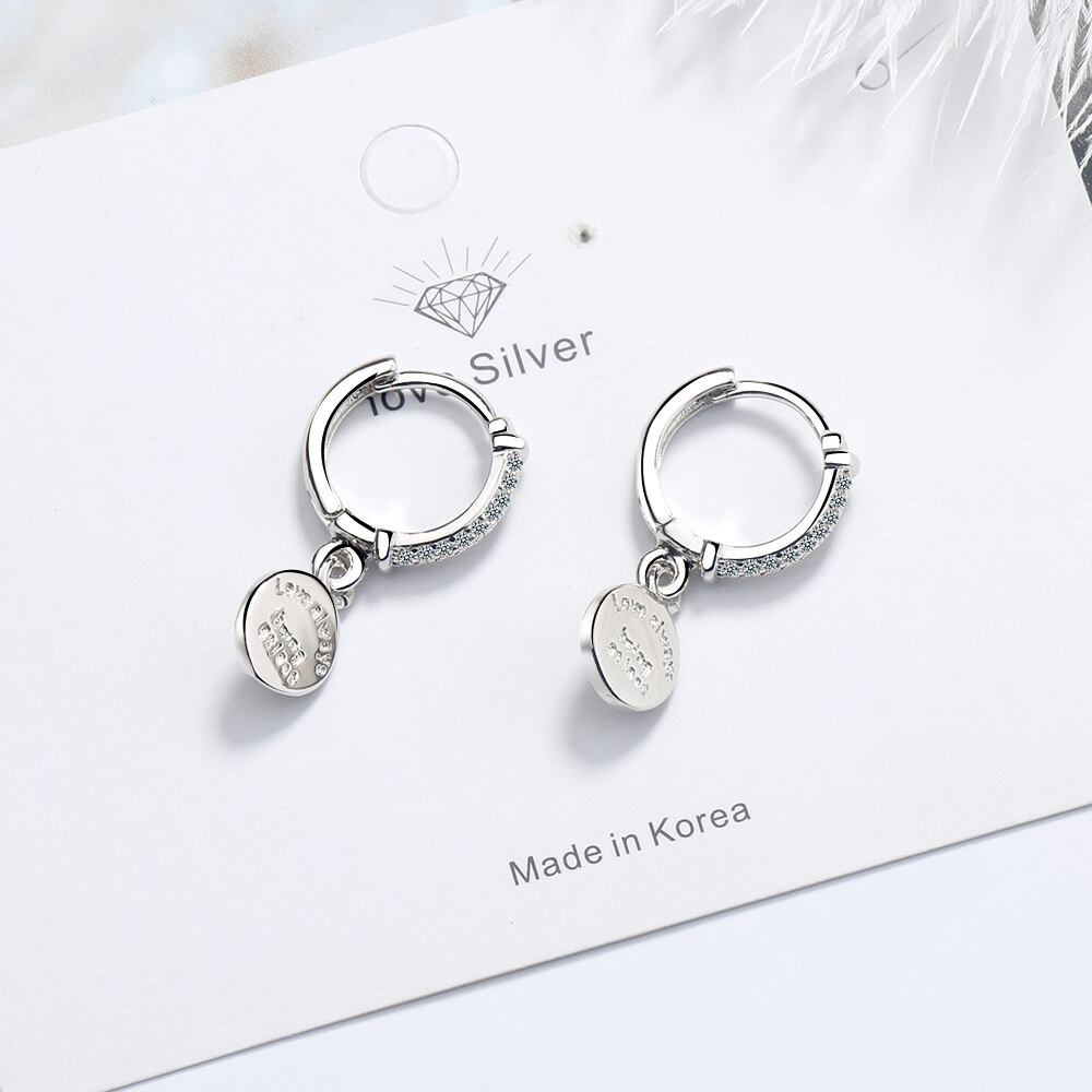 送料無料 ANENJERYシルバーカラーラウンドディスクレターフープピアススパークリングキュービックジルコンピアスレディースギフトS-E1079 イヤリング 指輪 銀 アクセサリー AE165560991135227