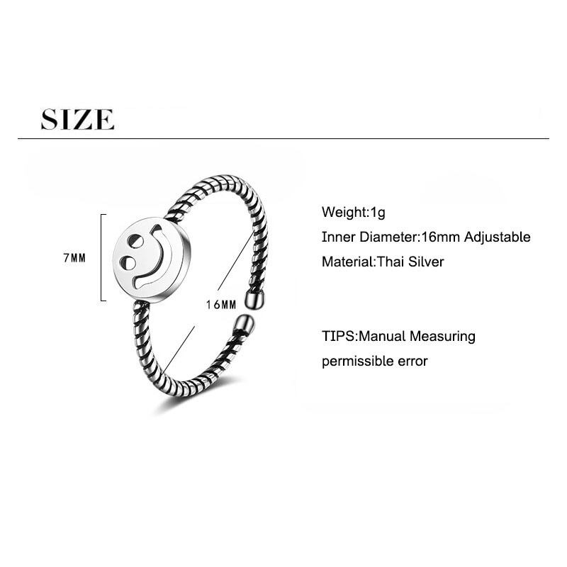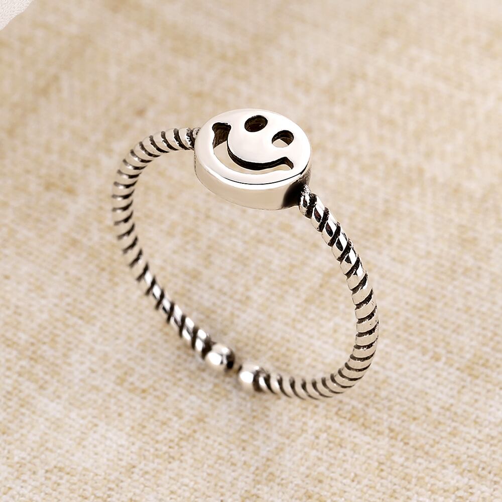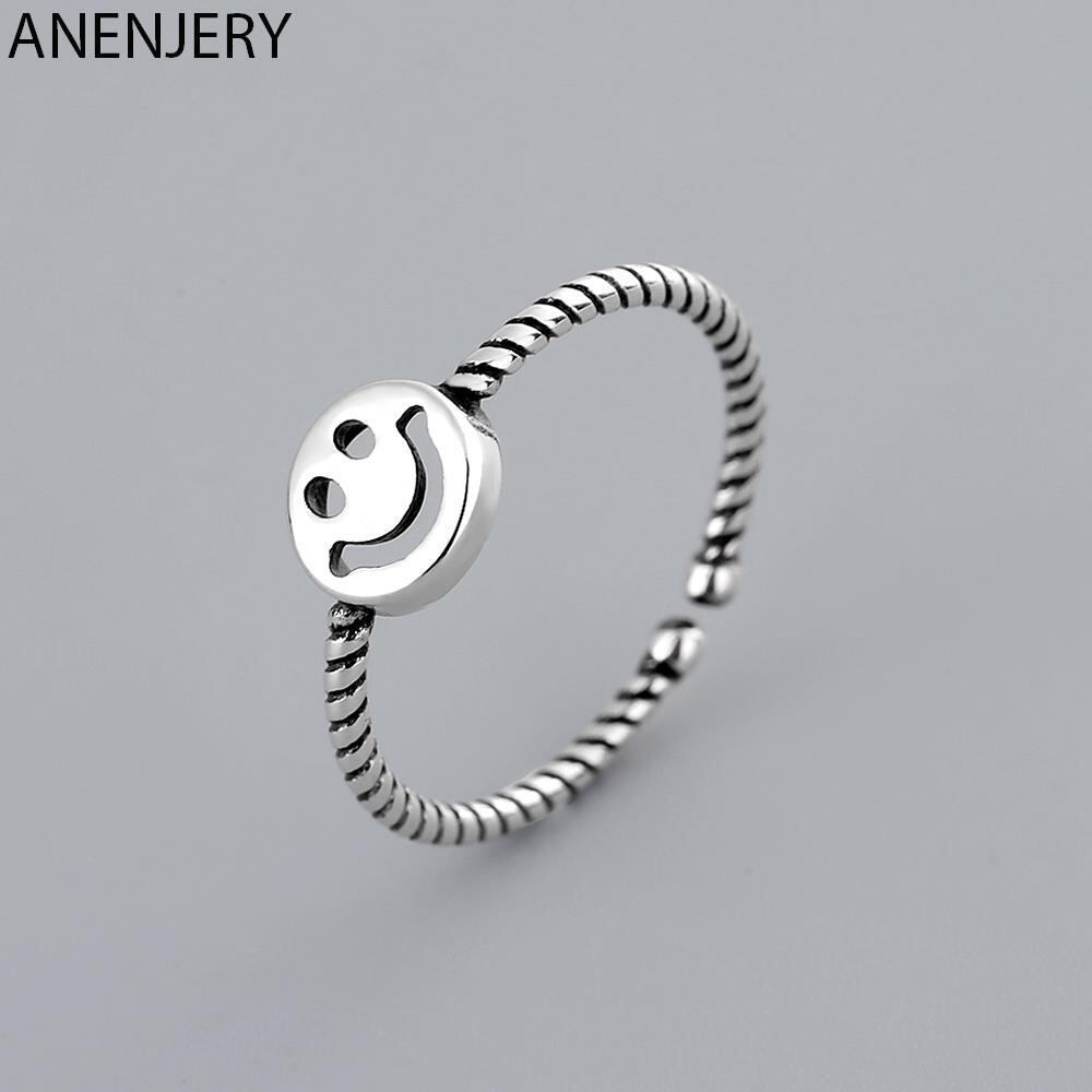 送料無料 ANENJERYシルバーカラーホロウスマイルフェイスタイシルバーカラーリングツイストロープオープンフィンガーリングパーティーギフトジュエリーS-R622 指輪 銀 アクセサリー AE165540937809485