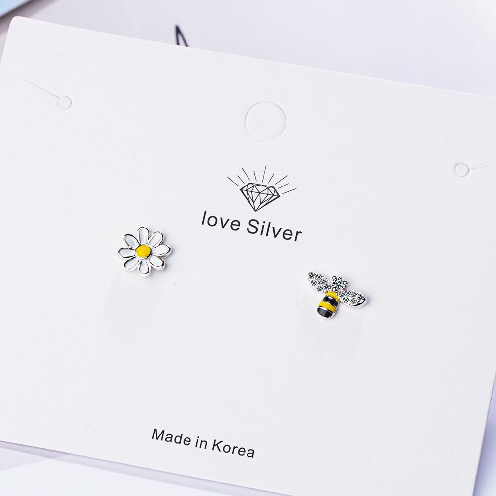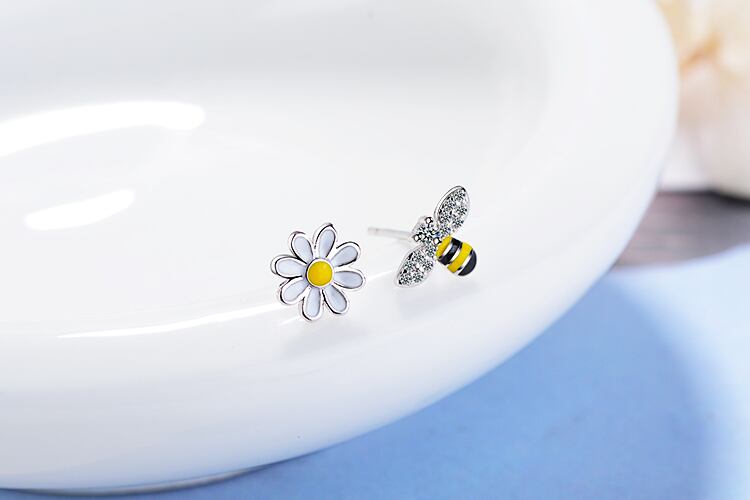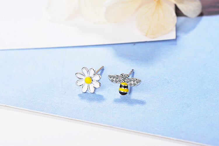 送料無料 ANENJERYシルバーカラービーサンフラワーアシンメトリースタッドピアス、ブリンブリンジルコンレディースジュエリーS-E644 イヤリング リング 指輪 フラワーデザイン 銀 アクセサリー AE16557284546250
