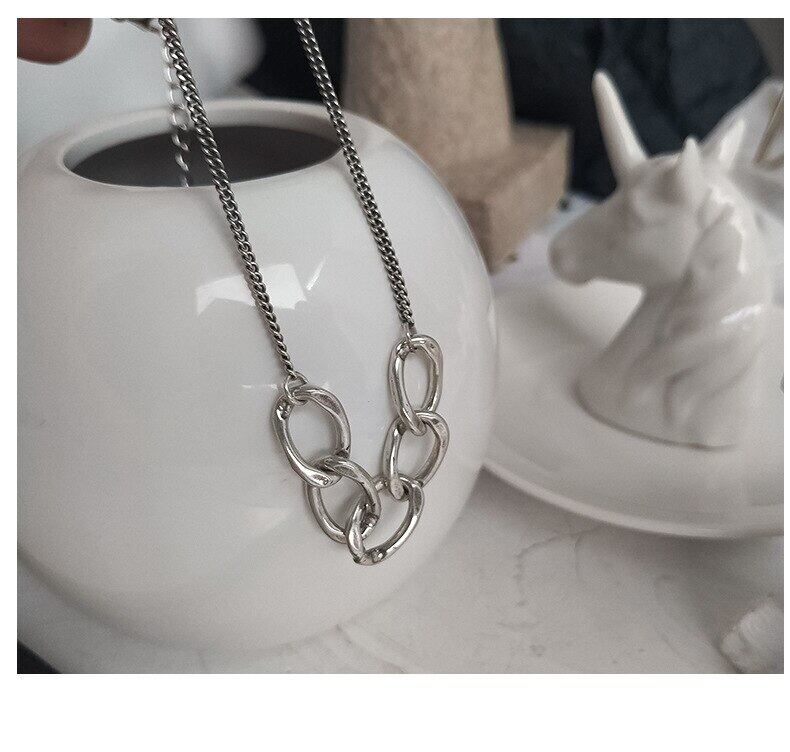 送料無料 ANENJERYシルバーカラーインターロックサークルタイシルバーネックレス女性幾何学的ヒップホップパーティージュエリーS-N663 レース 銀 アクセサリー AE165594208390722
