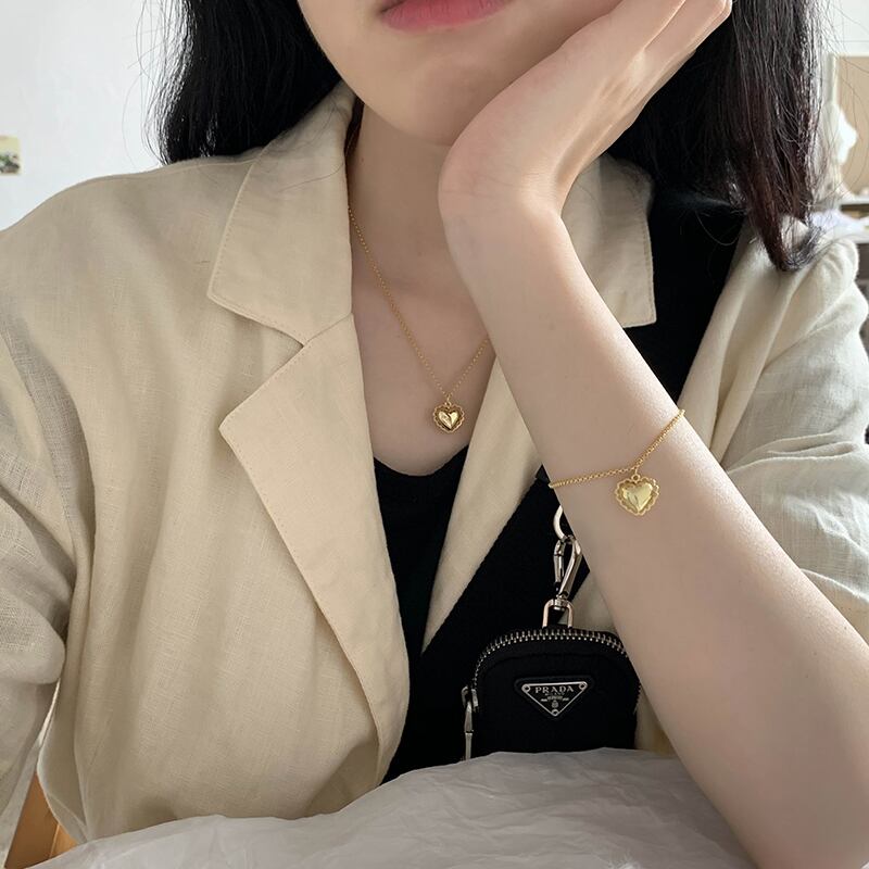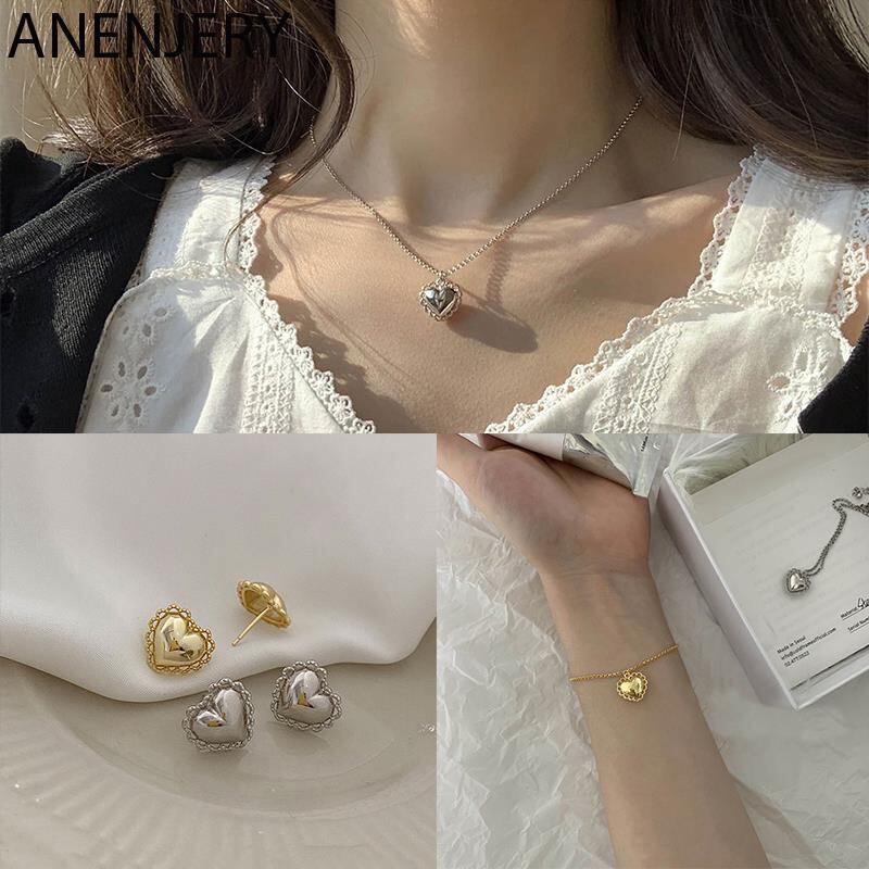 送料無料 ANENJERYシルバーカラー銅レースエッジラブハートネックレスブレスレットセット女性ジェントルスウィート人気ジュエリープレゼント 大人ガーリー キュート カジュアル 銀 アクセサリー AE165532702426580