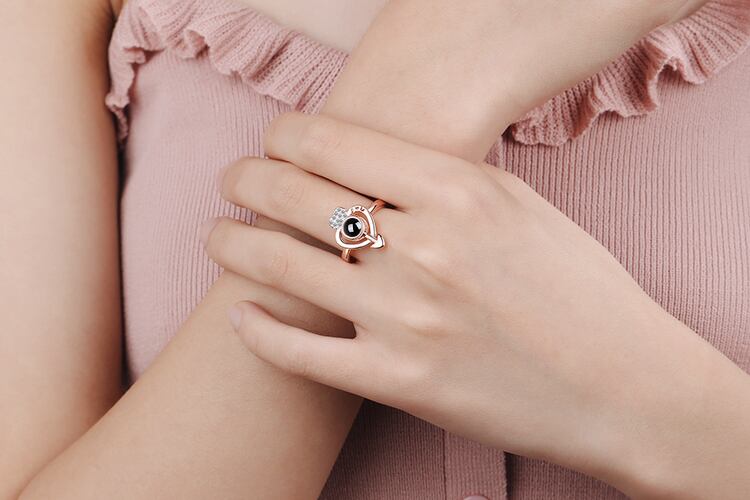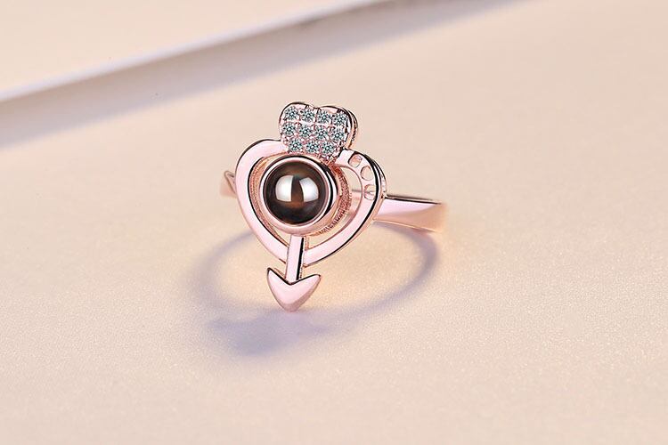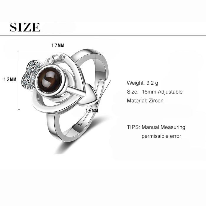 送料無料 ANENJERYシルバーカラーハート型アローリング女性100言語プロジェクションリングS-R480 指輪 銀 アクセサリー AE165583010431598