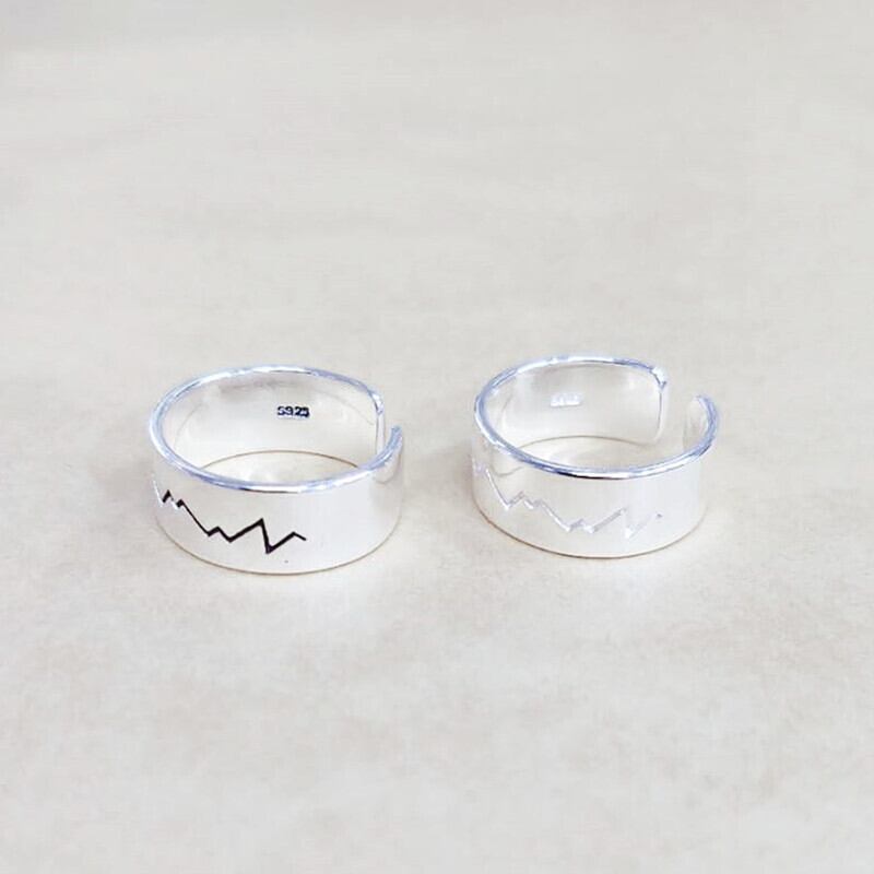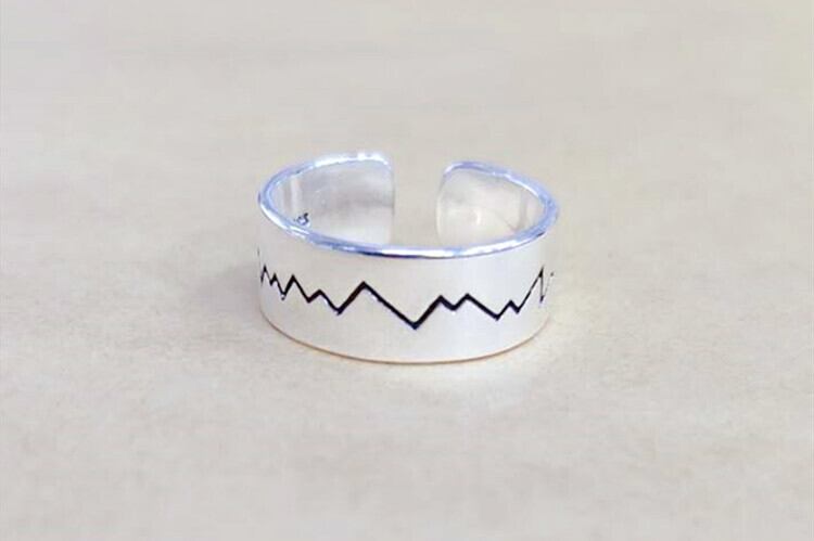 送料無料 ANENJERYシルバーカラーノベルティトレンディシルバープロミスハートビートウェーブECGリング女性アジャスタブルジュエリーS-R403 指輪 銀 アクセサリー AE165537941580359
