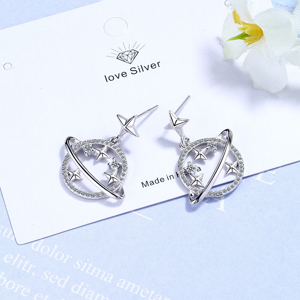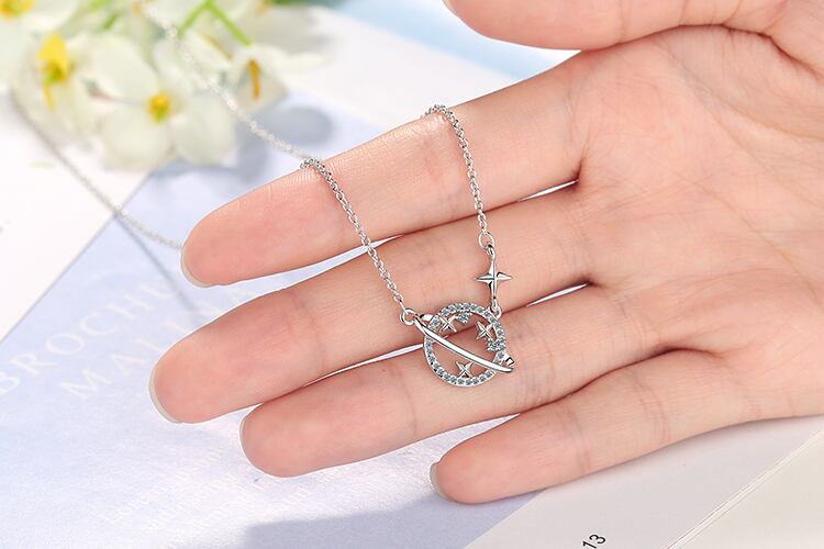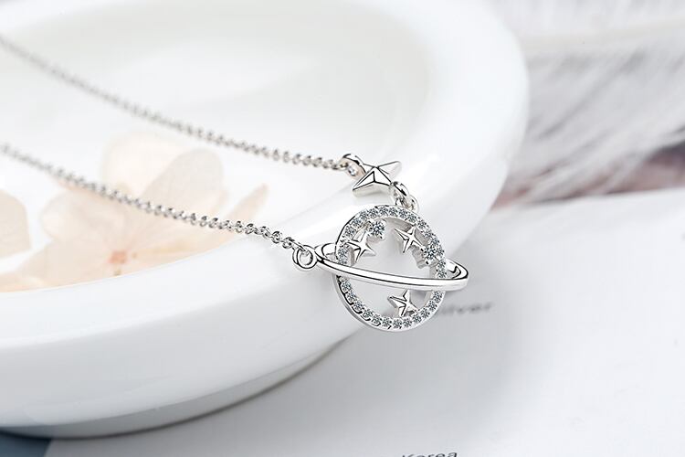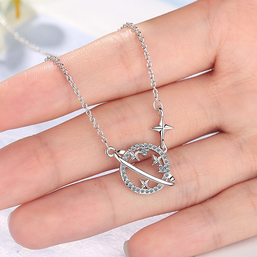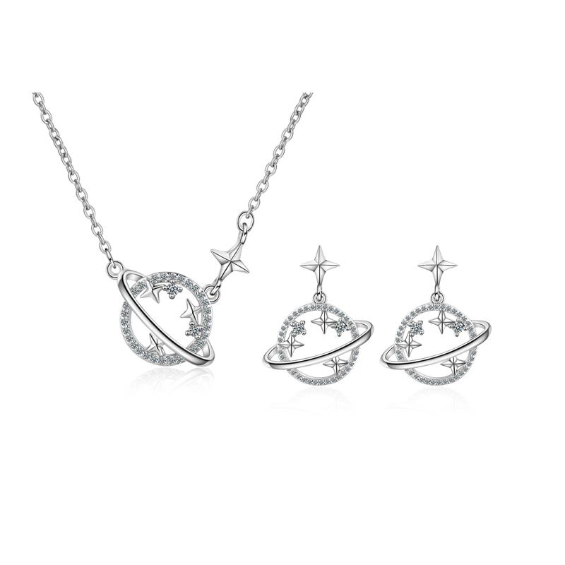 送料無料 ANENJERYシルバーカラーユニバースプラネットスタージュエリーセットキュービックジルコニアネックレスイヤリングセット女性のウェディングパーティージュエリー レース 銀 アクセサリー AE165577543443188