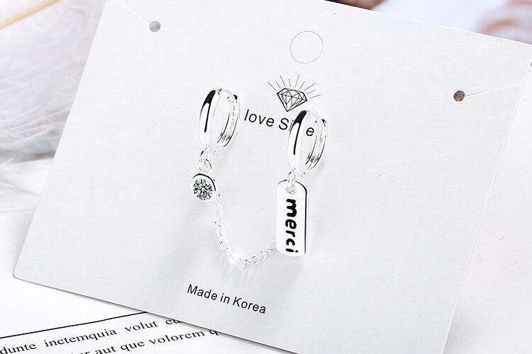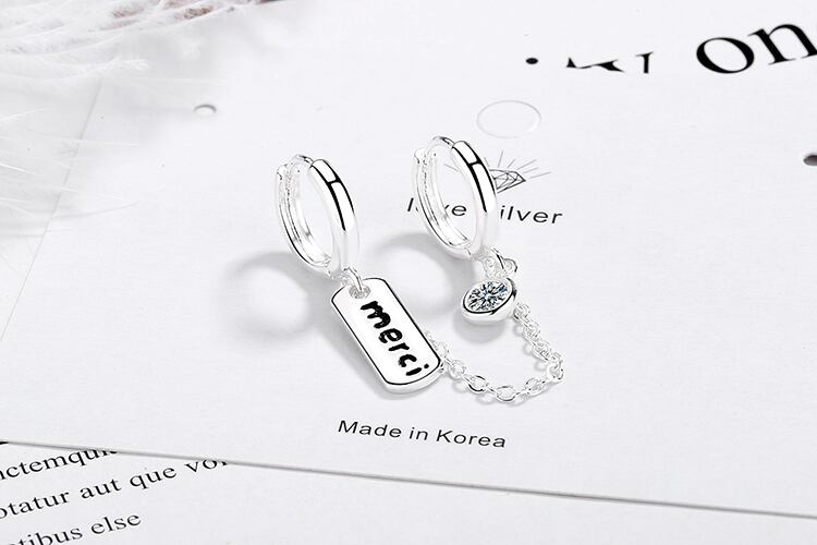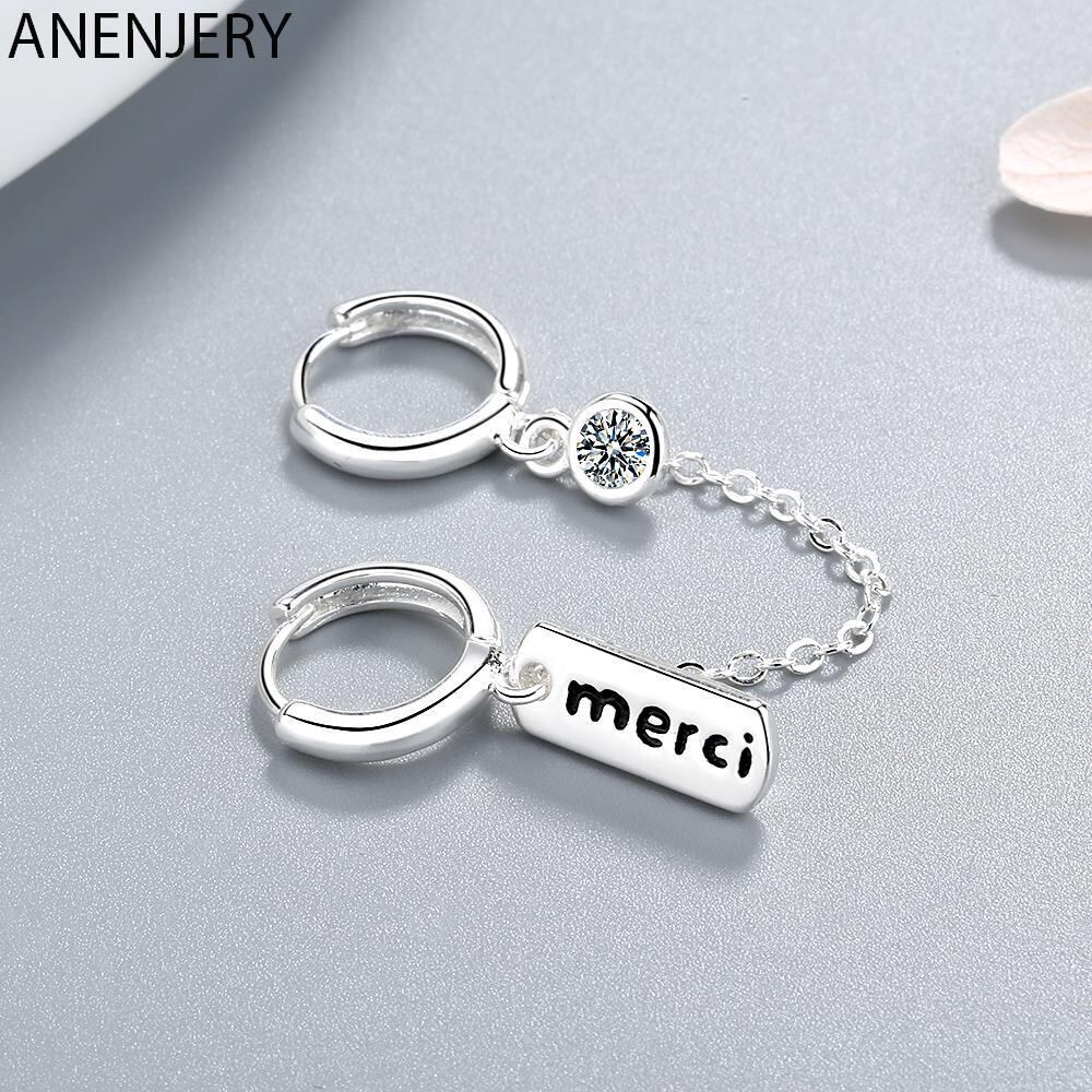 送料無料 ANENJERYシルバーカラーダブルイヤーホールレター「メルシー」フープピアスレディースジルコンジュエリーアクセサリーギフトS-E962 イヤリング 銀 アクセサリー AE165534843187671
