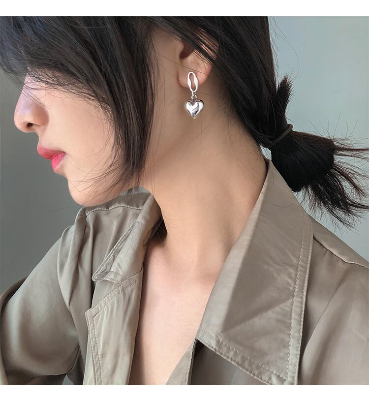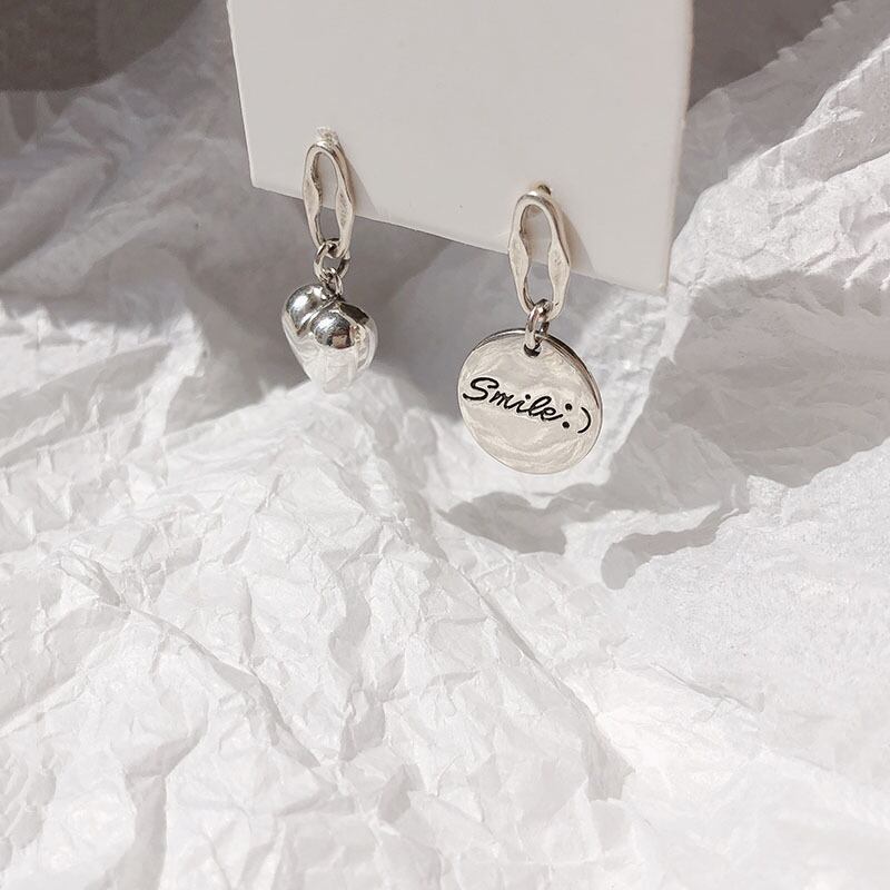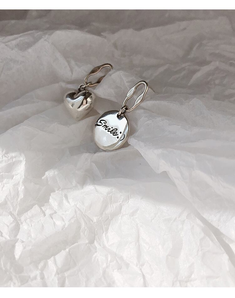 送料無料 シルバーカラーサーキュラーハート非対称イヤリングVIintageタイシルバースマイルフェイスピアスレディースジュエリーS-E1162 指輪 銀 アクセサリー AE165526820791944