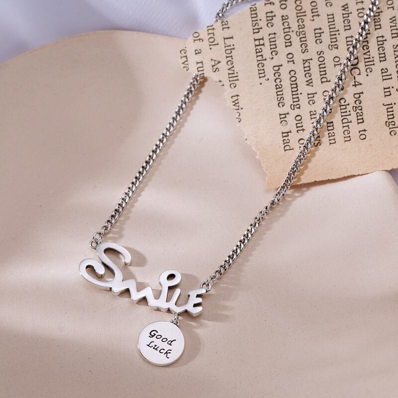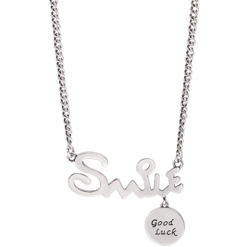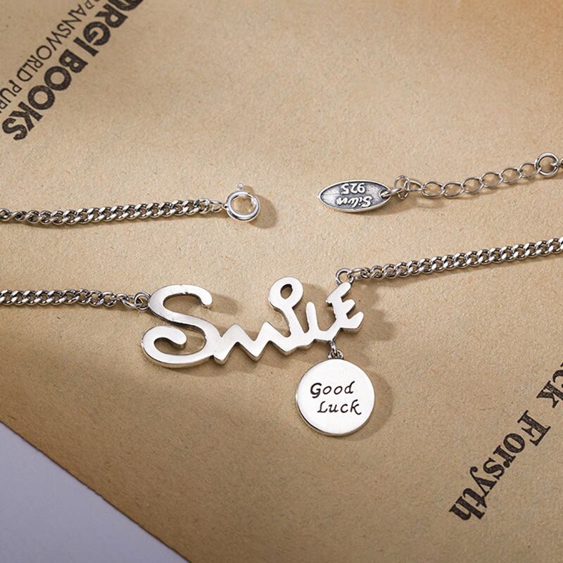 送料無料 シルバーカラー「SMILE」レターアルファベットネックレスレトロラウンドディスクグッドラックタイシルバーネックレスレディースメンズギフトS-N623 レース 銀 アクセサリー AE165589000303266