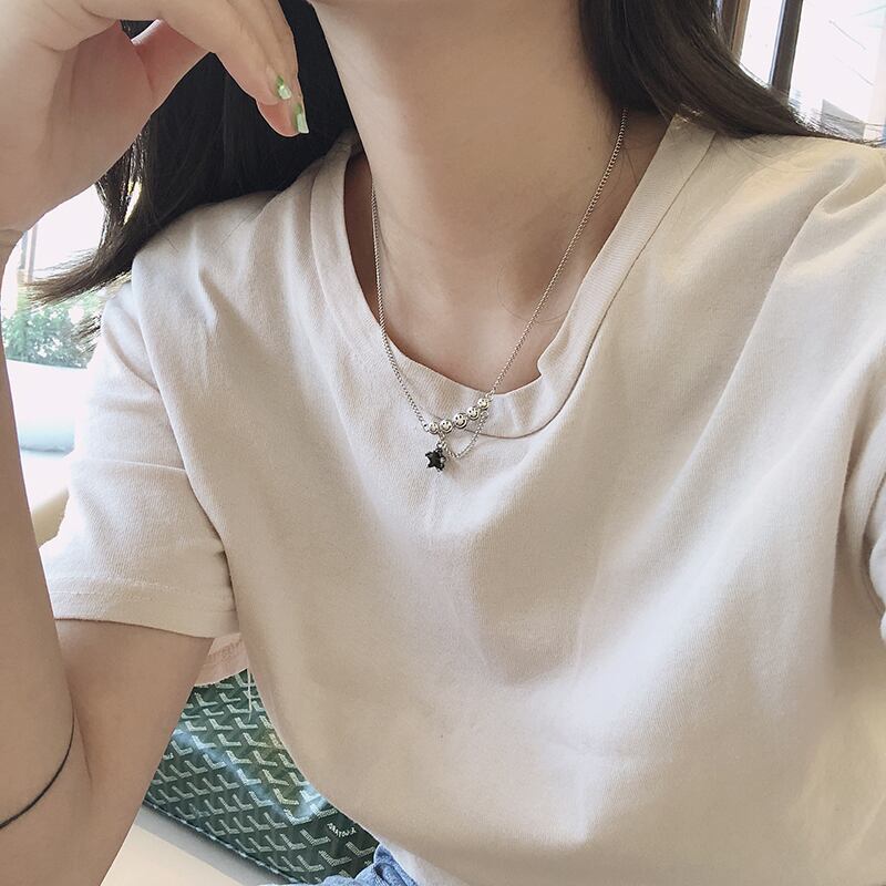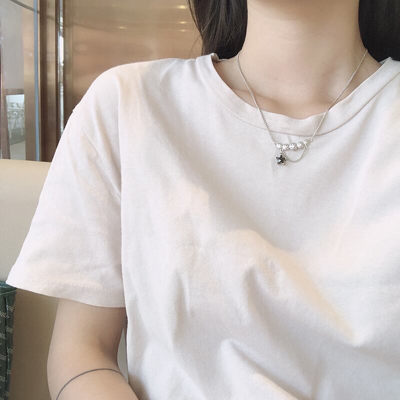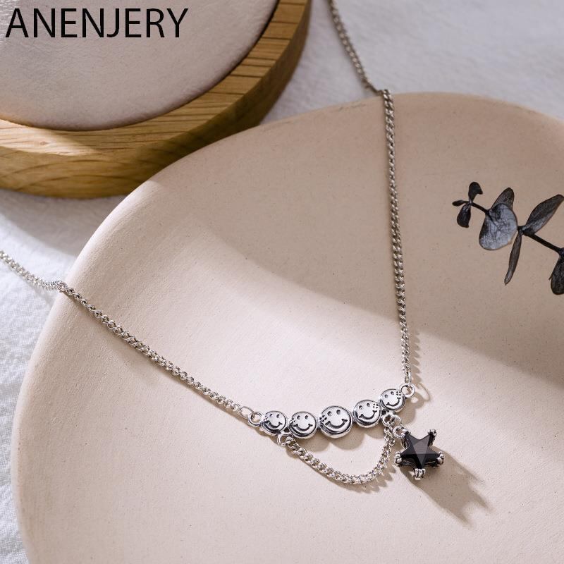 送料無料 ANENJERYシルバーカラースマイルフェイスペンダントネックレスヴィンテージスターブラックジルコンタイシルバーネックレスレディースジュエリーギフトS-N625 レース 銀 ビンテージ アクセサリー AE165589510580753
