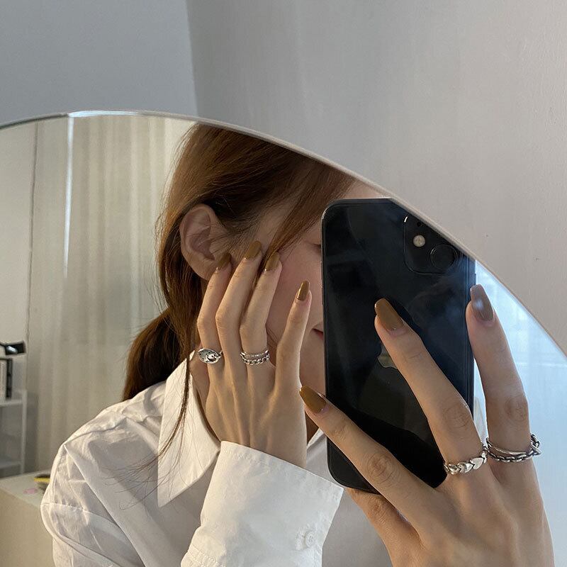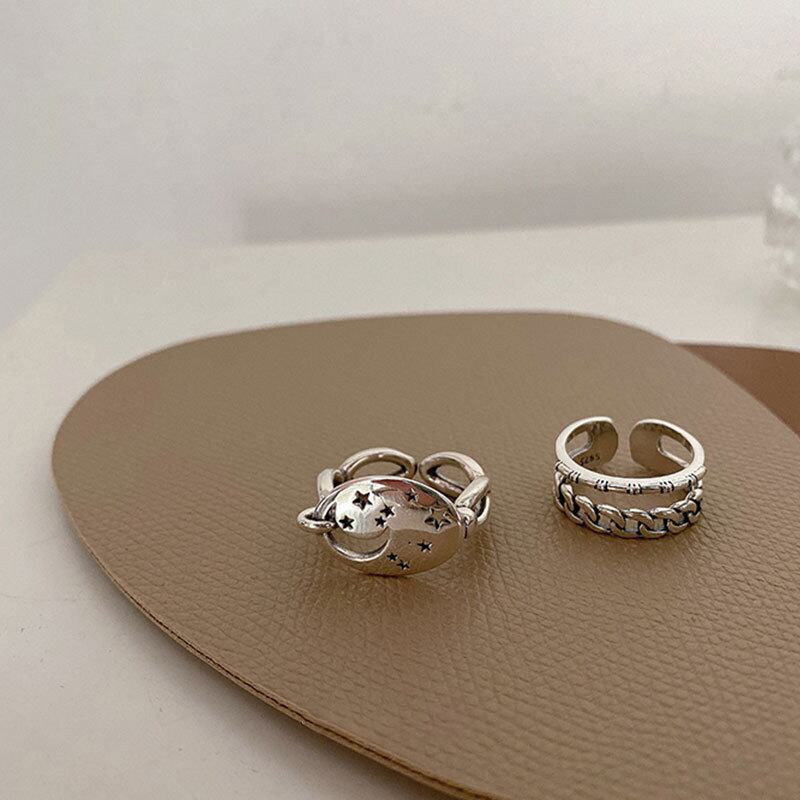 送料無料 ANENJERYシルバーカラーホロウスタームーンタイシルバーリングレディースメンズダブルレイヤーロックチェーンオープンフィンガーリングS-R914 指輪 銀 アクセサリー AE165535689534578