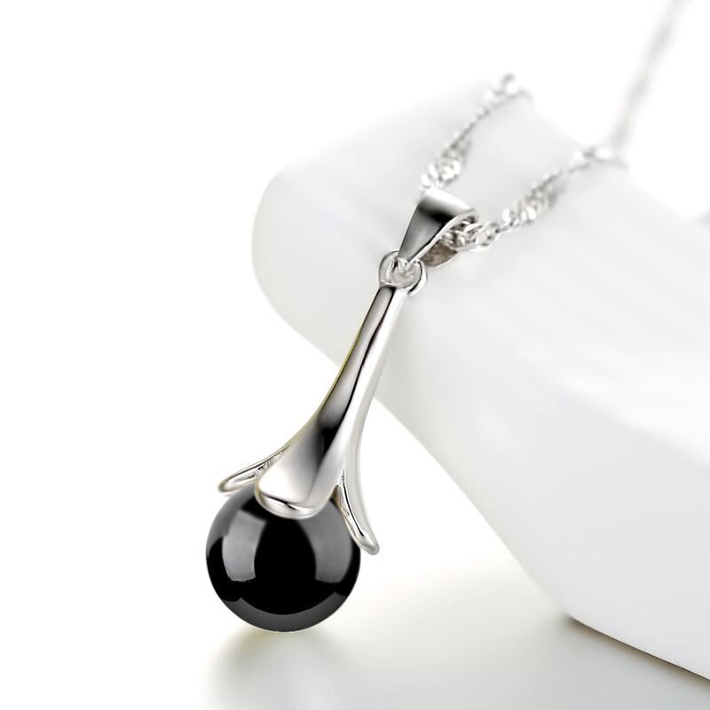 送料無料 ANENJERYシルバーカラーウォーターラックリーフレッドブラックストーンパールオパールクリスタルボールペンダントネックレスジュエリーレディースS-N135 レース 蛋白石 真珠 銀 アクセサリー AE165560965731621