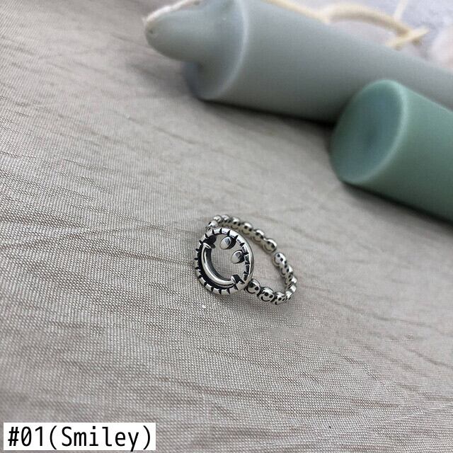 送料無料 ANENJERYシルバーカラーホロウスマイルフェイスタイシルバーリングミニマリストラウンドボールTelオープンリングFoベストパーティーS-R645 指輪 銀 アクセサリー AE165564988769637