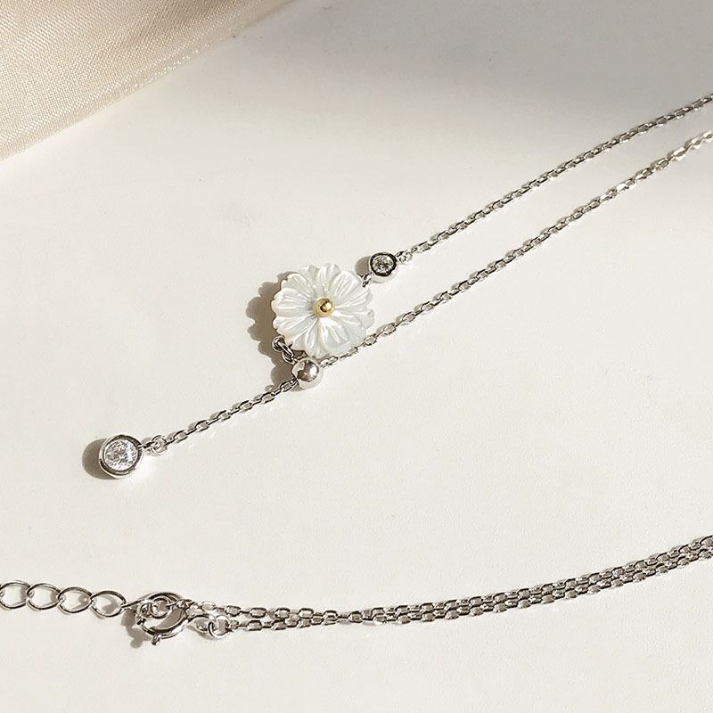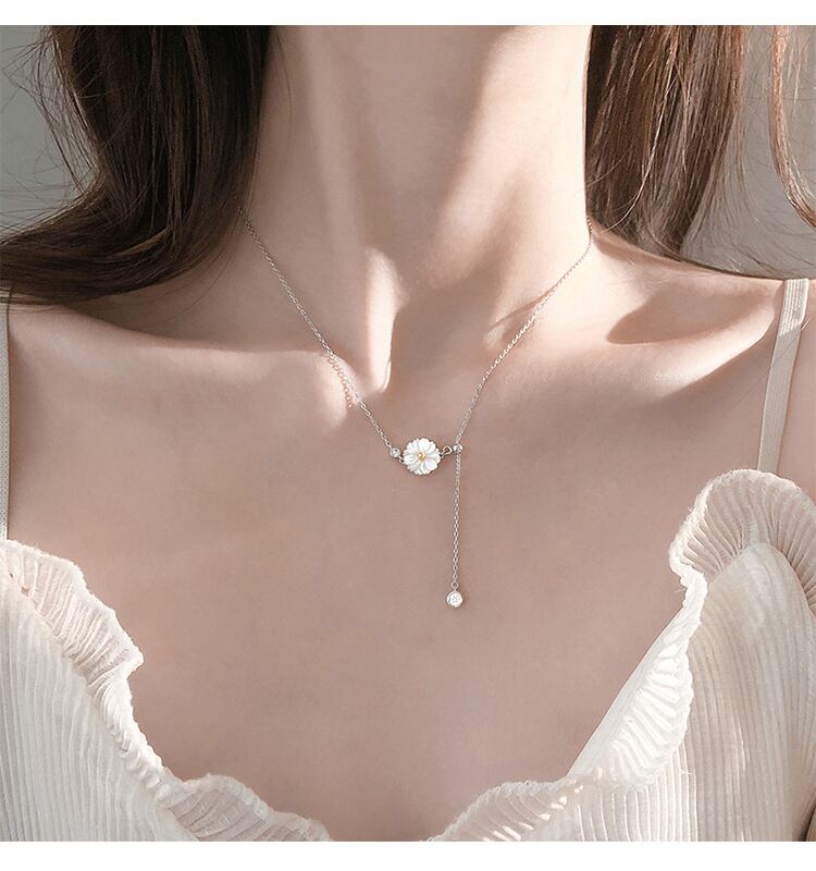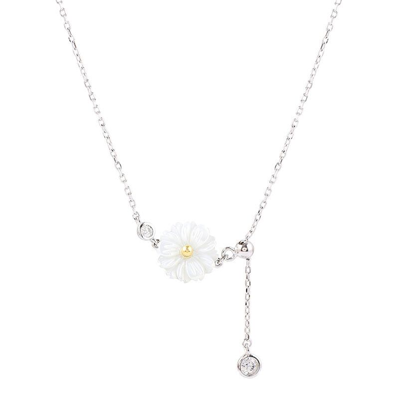 送料無料 シルバーカラーシェルスモールフラワーロングテルネックレス鎖骨チェーンアジャスタブルネックレスレディースジュエリーS-N603 レース フラワーデザイン 銀 アクセサリー AE165528388181898
