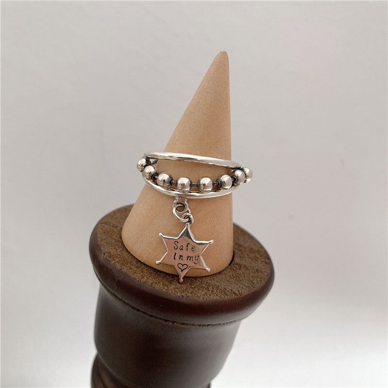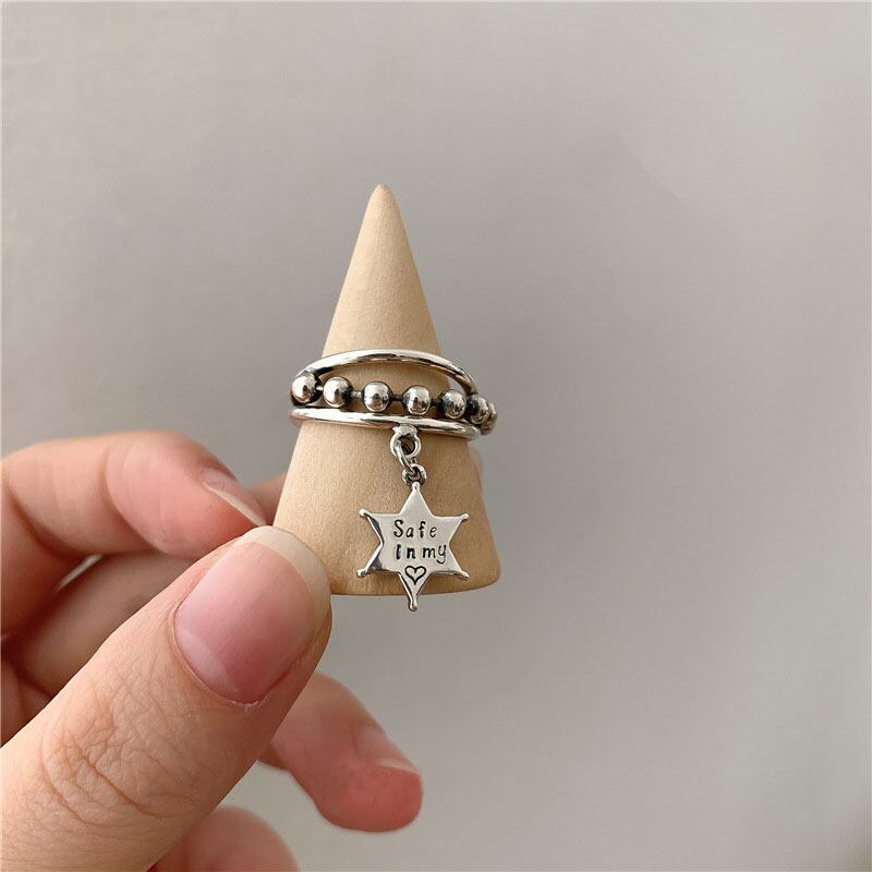 送料無料 ANENJERYシルバーカラーペンタグラムペンダントタイシルバーリングミューティレイヤーオープンリングレディースジュエリーギフトS-R736 指輪 銀 アクセサリー AE165570050848442