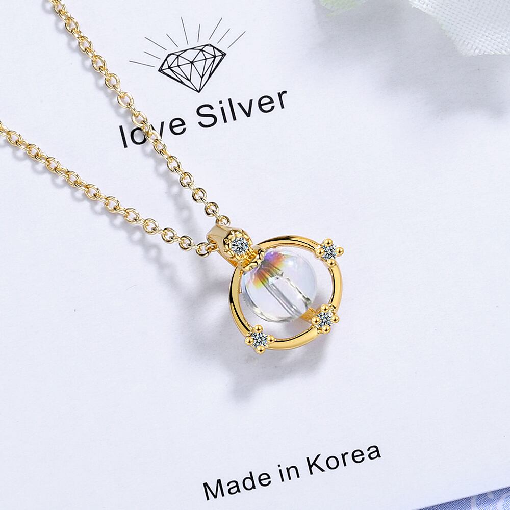 送料無料 シルバーカラー可憐なラウンドサークルユニバースプラネットスター、グラデーションムーンストーンビーズジュエリーレディースギフトS-N482 銀 アクセサリー AE165527981858980
