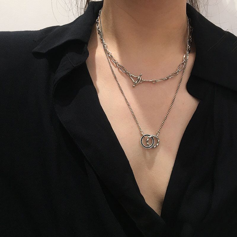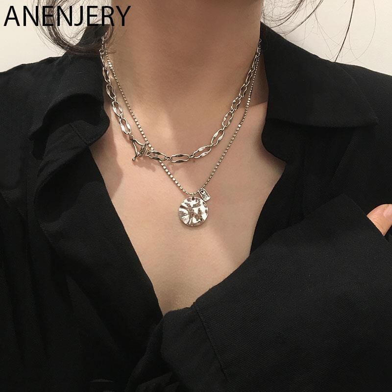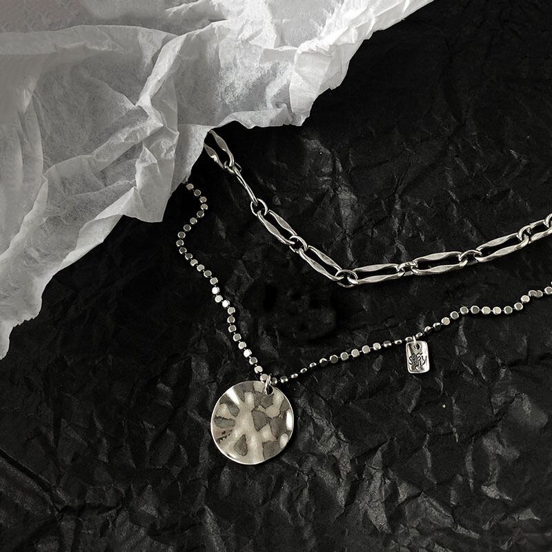 送料無料 ANENJERYシルバーカラーイレギュラーディスクペンダントネックレスヴィンテージビーズチェーンタイシルバーネックレスセットレディースメンズカップルS-N593 レース 銀 ビンテージ アクセサリー AE165540920073461
