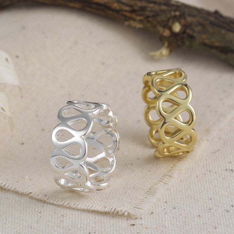 送料無料 ANENJERYシルバーカラーlyポリッシュスムースウーブンホローリングシンプルWシェイプオープンリングレディースメンズゴールドS-R762 指輪 銀 アクセサリー AE165536309625316