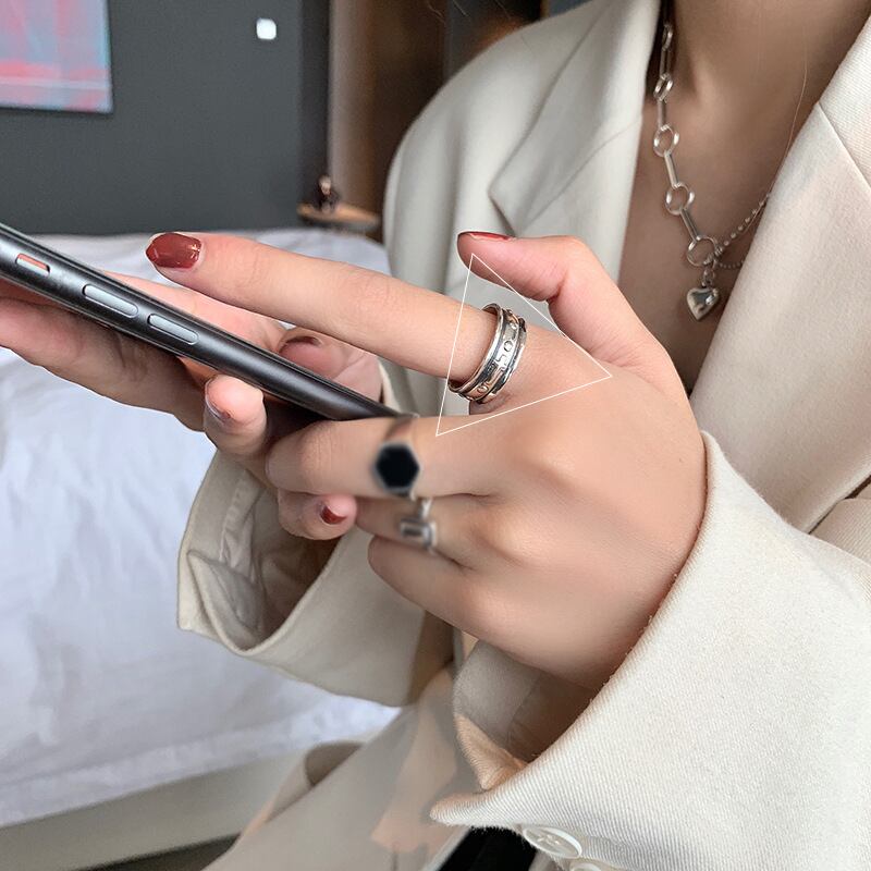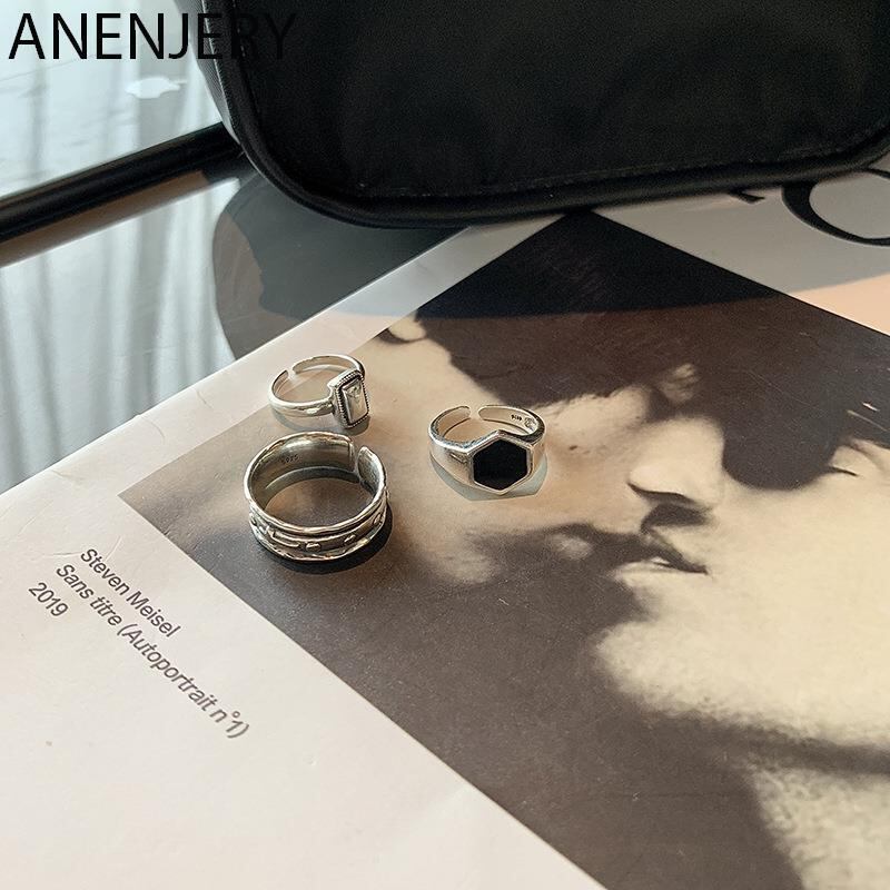 送料無料 ANENJERYシルバーカラーブラックグレーズヘキサゴンスクエアタイシルバーリングレディース幾何学オープンリングジュエリーS-R857 指輪 銀 スクウェア アクセサリー AE165558431393917