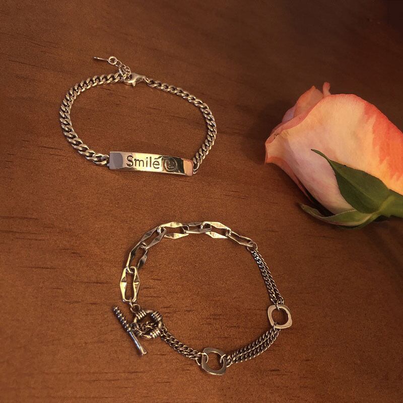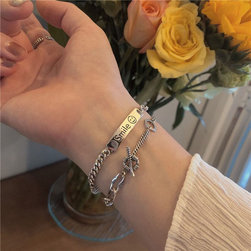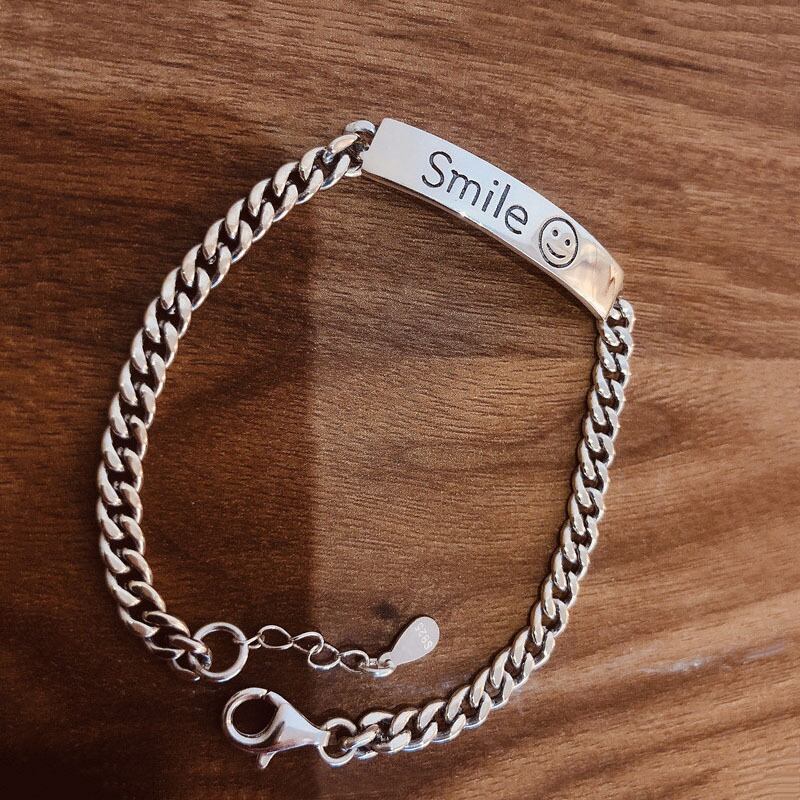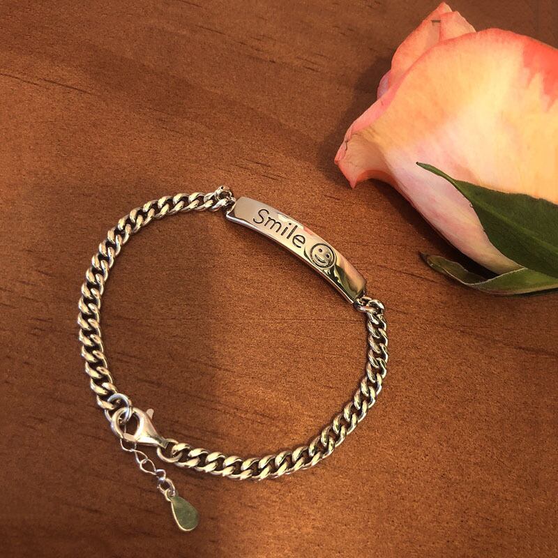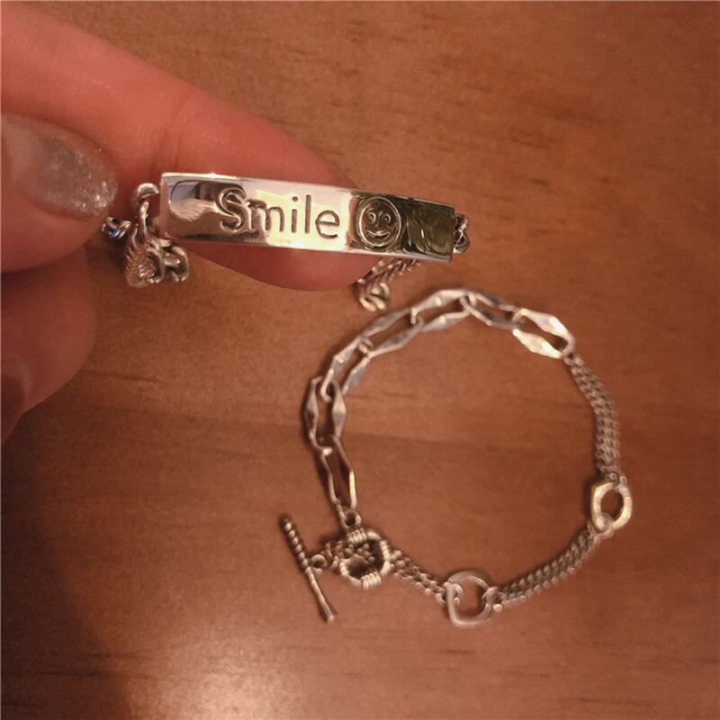 送料無料 ANENJERY笑顔タイシルバーブレスレットロックチェーンスクエアブレスレットジュエリーギフトシルバーカラーS-B347 銀 スクウェア アクセサリー AE165594957550415