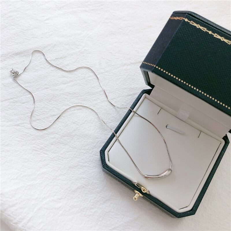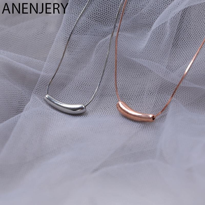 送料無料 ANENJERYシルバーカラースモールナスベンドチューブペンダントネックレスレディーススネークチェーンネックレスジュエリーS-N637 レース 銀 アクセサリー AE165597715221450