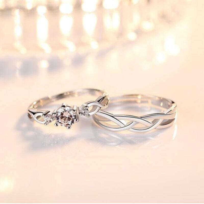 送料無料 ANENJERYシルバーカラークリックツイストクロスインフィニティラブカップルリングCZストーンウェディングエンゲージリングトレンディシルバーS-R257 指輪 銀 アクセサリー AE165518104228692